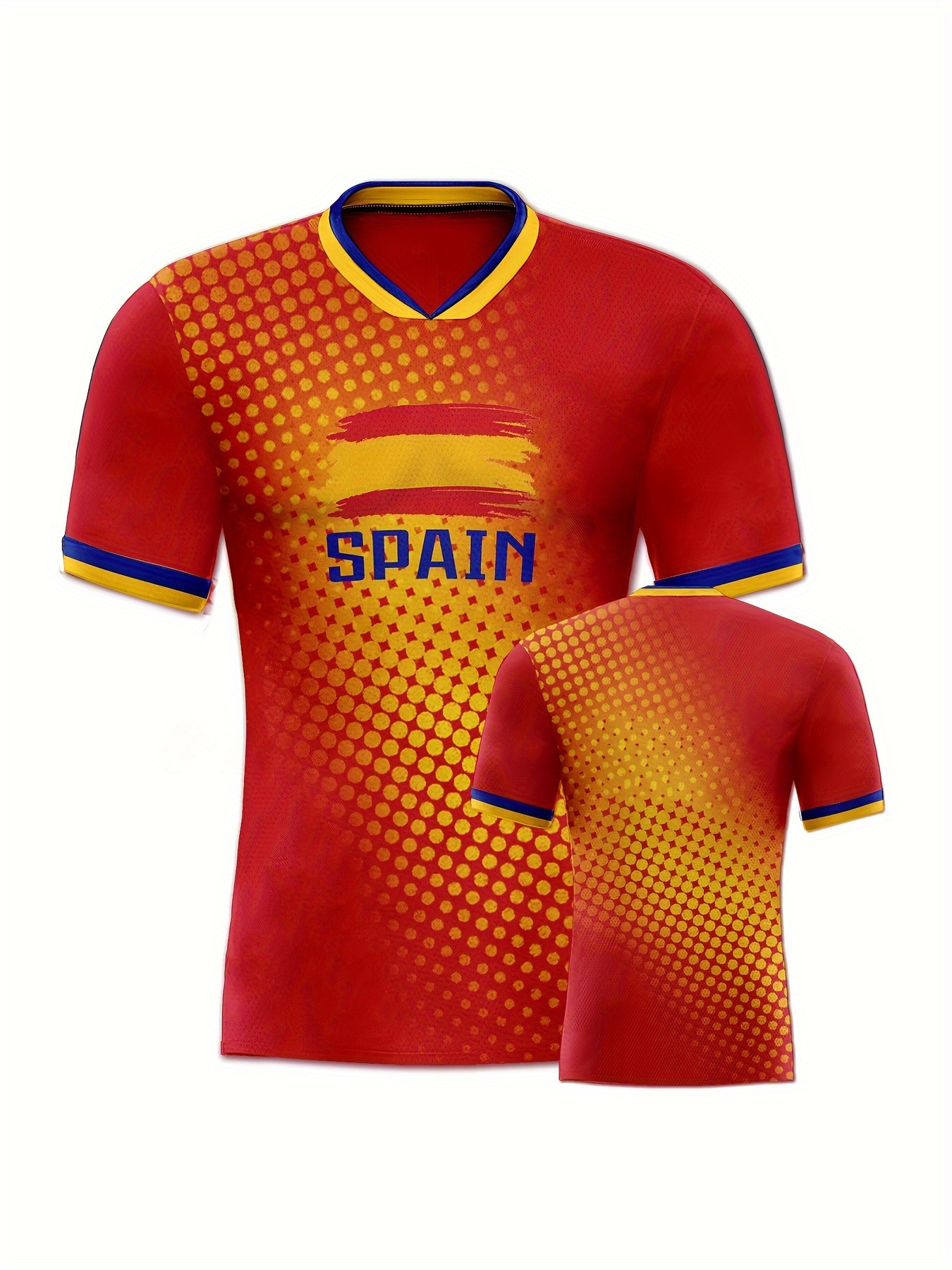 Women's Large Size Professional Sports Fabric Creative Pattern Print Spain Home Soccer Jersey T-shirt, Soccer Jersey Flag Uniforms Shirts Breathable And Lightweight, Moisture-Wicking, As Gifts For Sports Fans