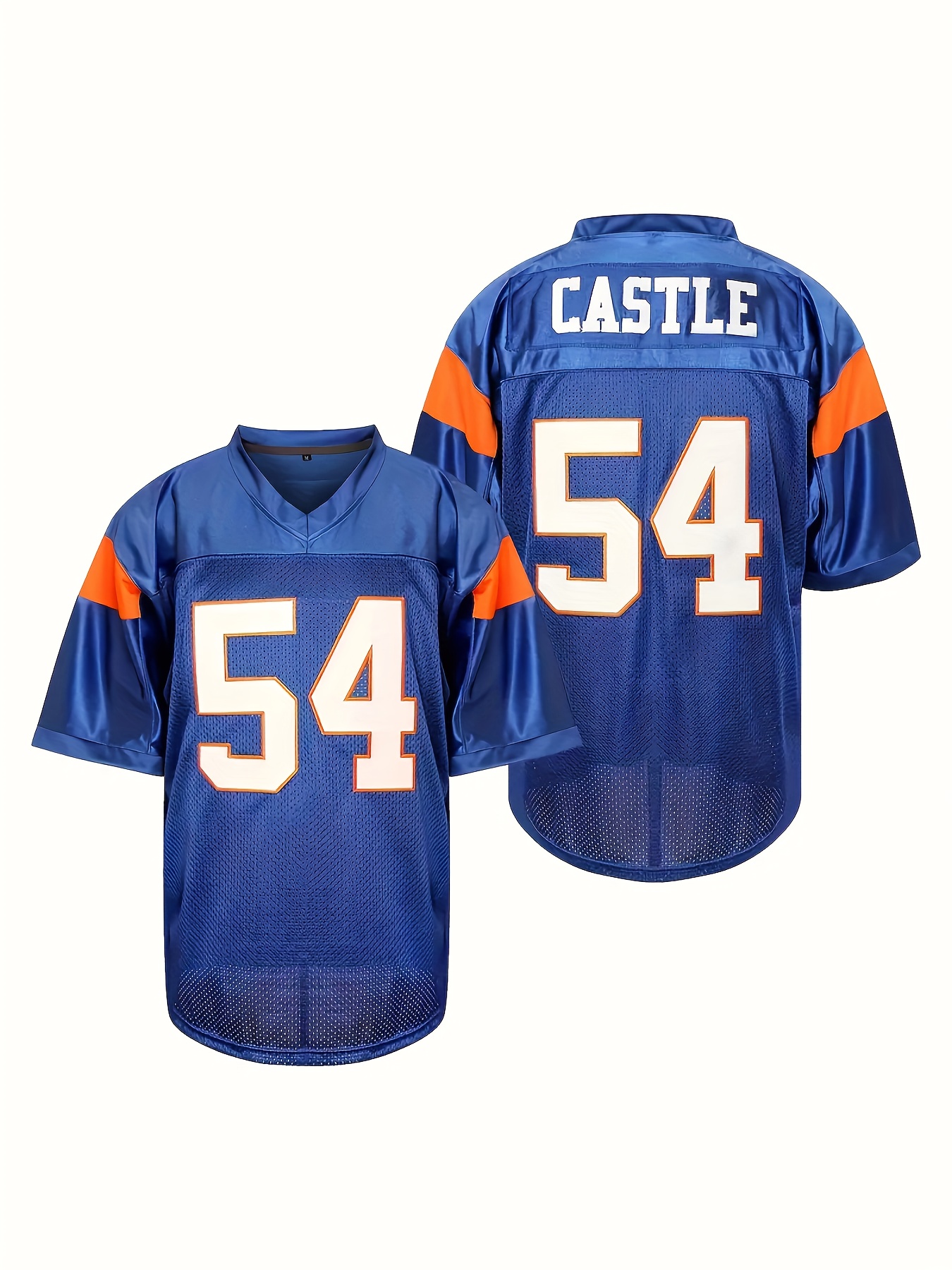 1pc Men'S Polyester American Football Jersey - Sports V-Neck Sweatshirt with Embroidered Letter and Number, Slight Stretch Knit Fabric, Loose Fit for Team Sports, Parties, and Casual Wear - Four Seasons