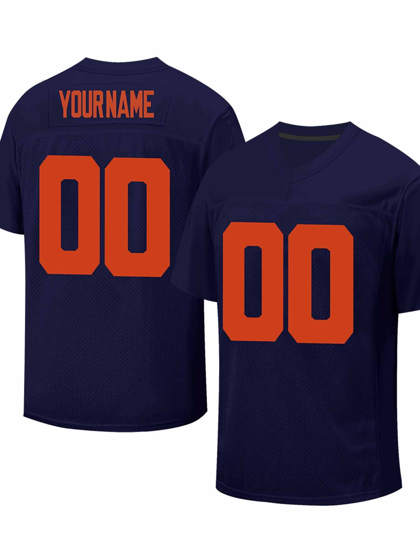 Customizable Women'S Football Shirt - Personalized Name & Number, Navy Blue with Orange Accents, V-Neck, Short Sleeve, Summer Sports Apparel for Team Building, Parties, or Casual Wear, Football Shirt, Party Apparel, Sporty Design, Comfortable Fit