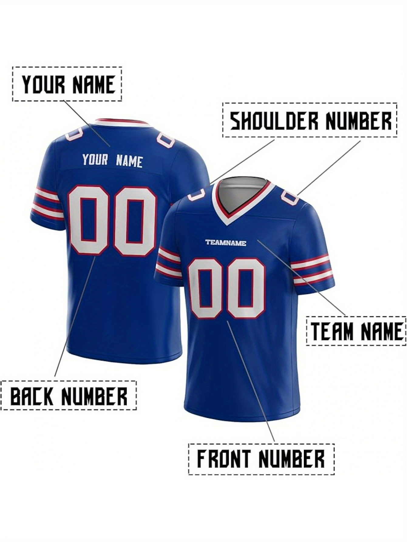 Customized Football Jersey - Personalized Team Name & Number, V-Neck Sportswear, Lightweight Summer Football Shirt with Bold Print, Casual or Team Uniform for Sports & Casual Wear