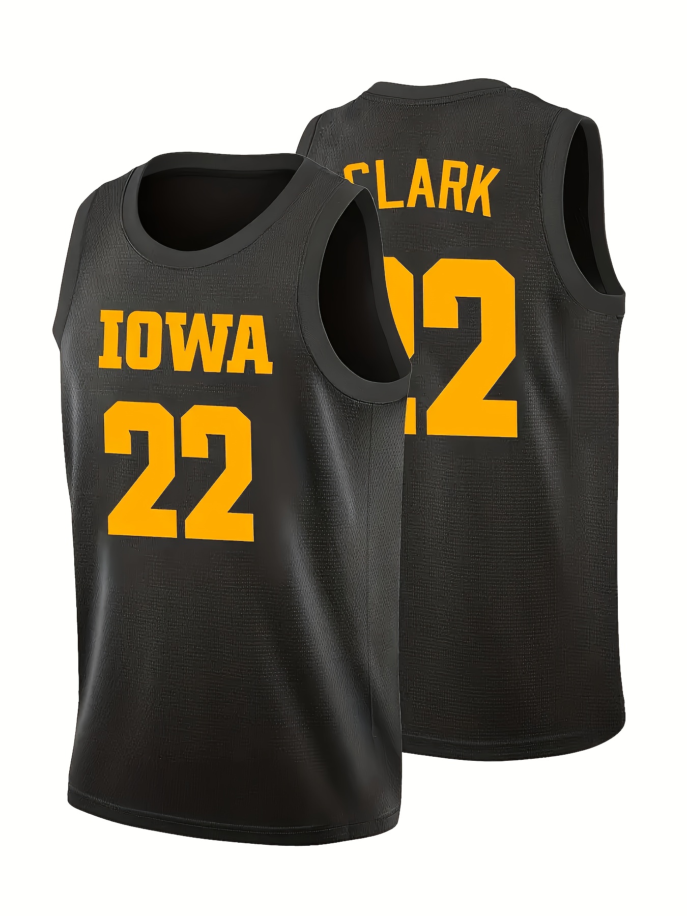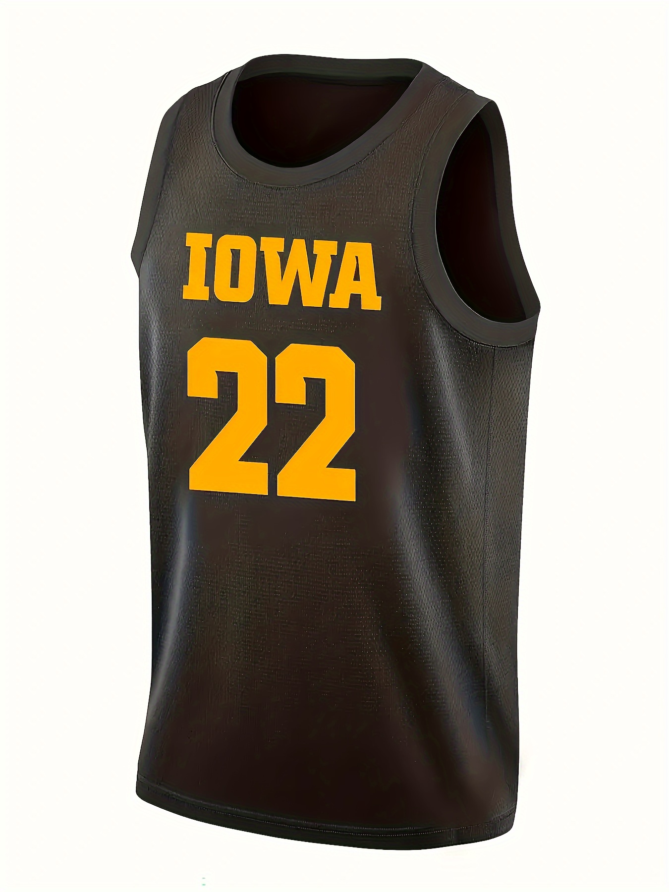 Men's #22 Iowa Basketball Jersey - Embroidered Name & Number, Black & Yellow V-Neck Sleeveless Sports Uniform for Team Sports & Parties, Basketball Gear