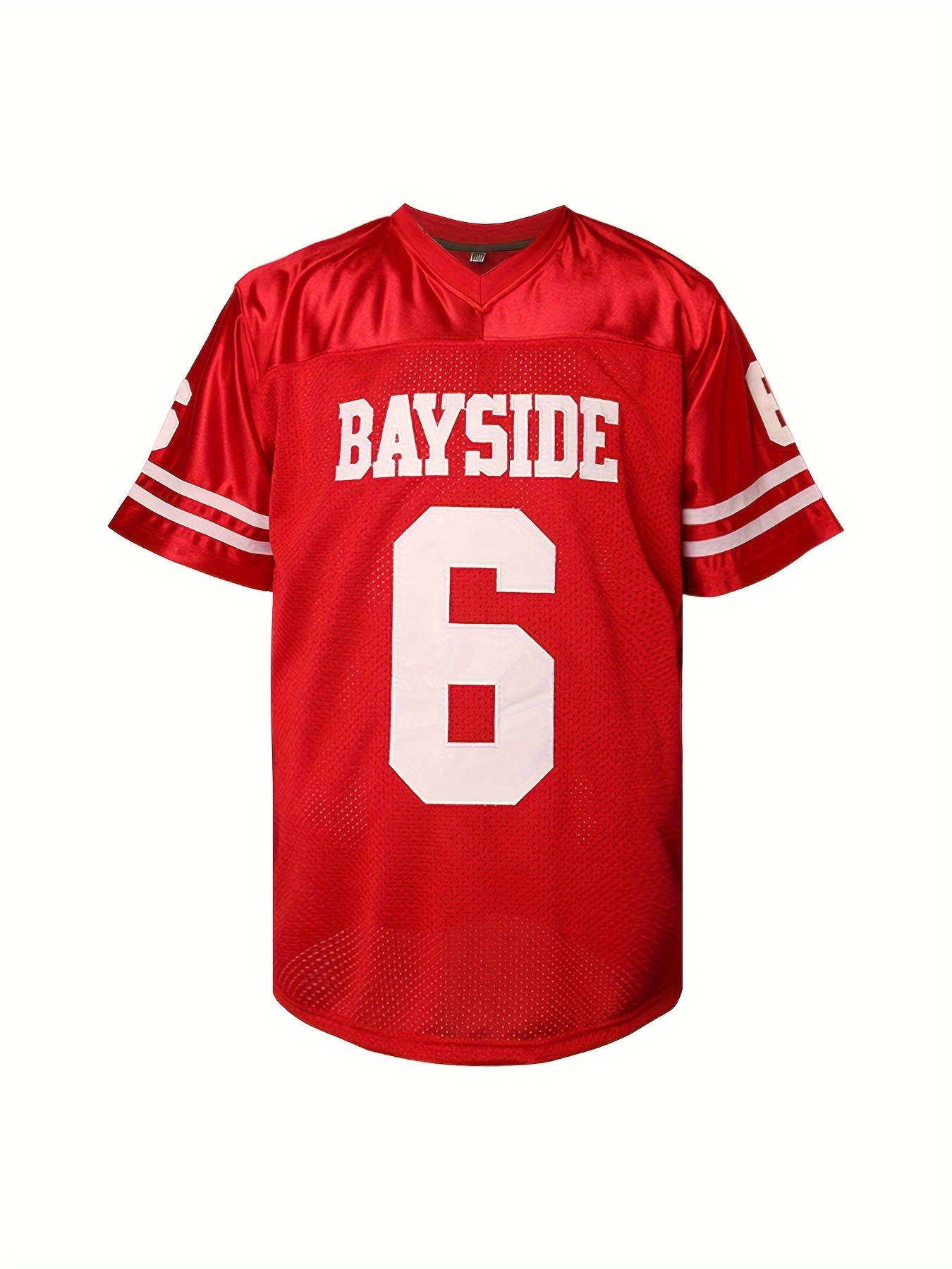 1pc Men'S Red Polyester American Football Jersey - V-Neck Sports Sweatshirt with Embroidered Lettering & Number, Slight Stretch Knit Fabric, Loose Fit for Team Sports, Parties & Casual Wear