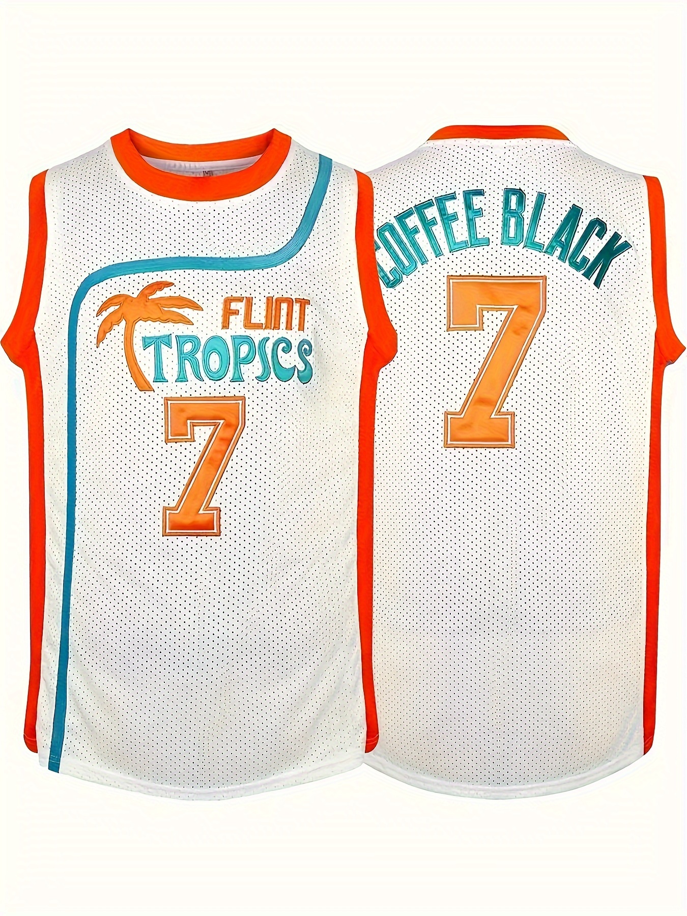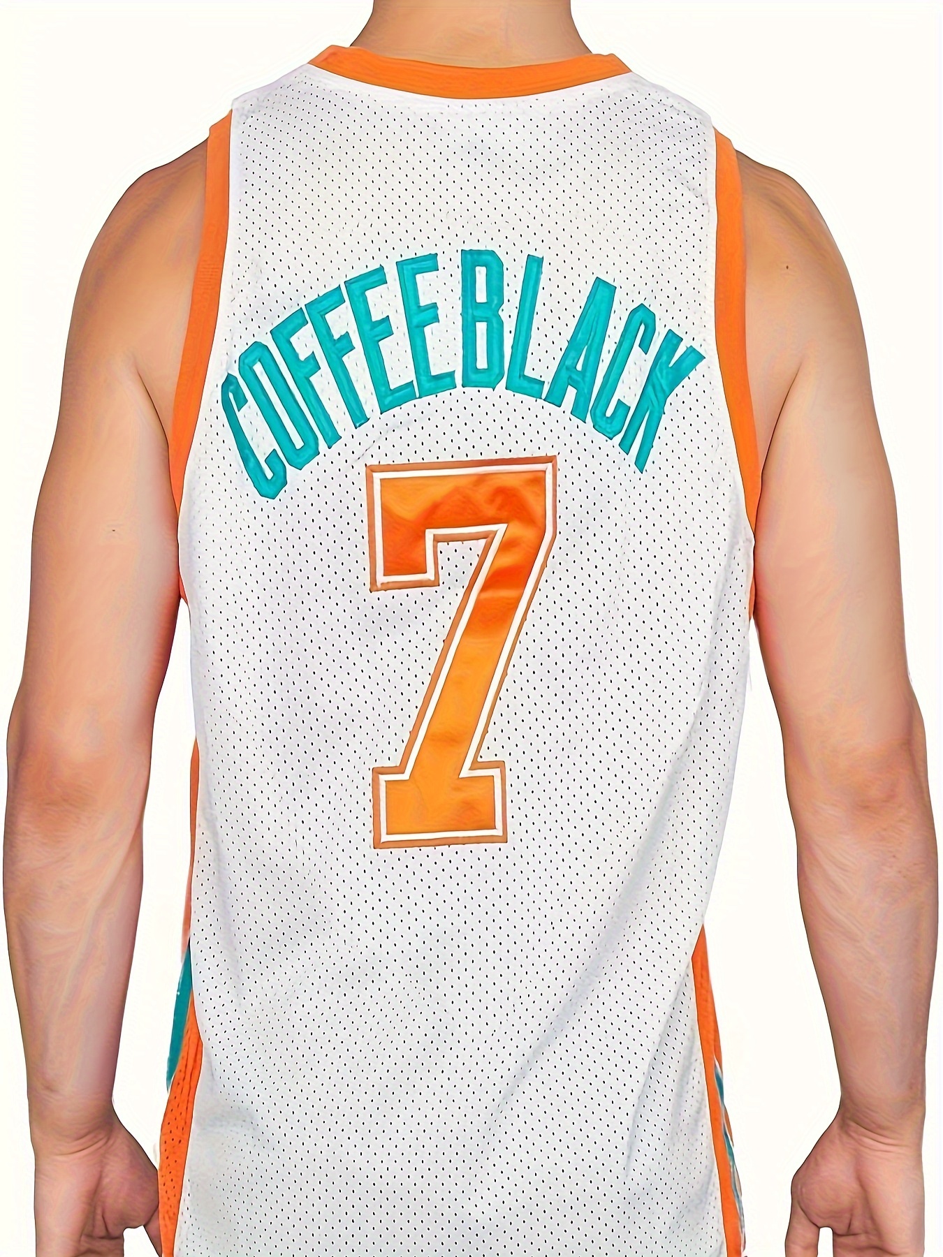 COFFEE BLACK #7 Retro Embroidery Design Jersey - Men's Breathable Sleeveless Basketball Training Uniform For Summer Party And Street Wear - Comfortable Round-Neck Sports Apparel For Active Lifestyles