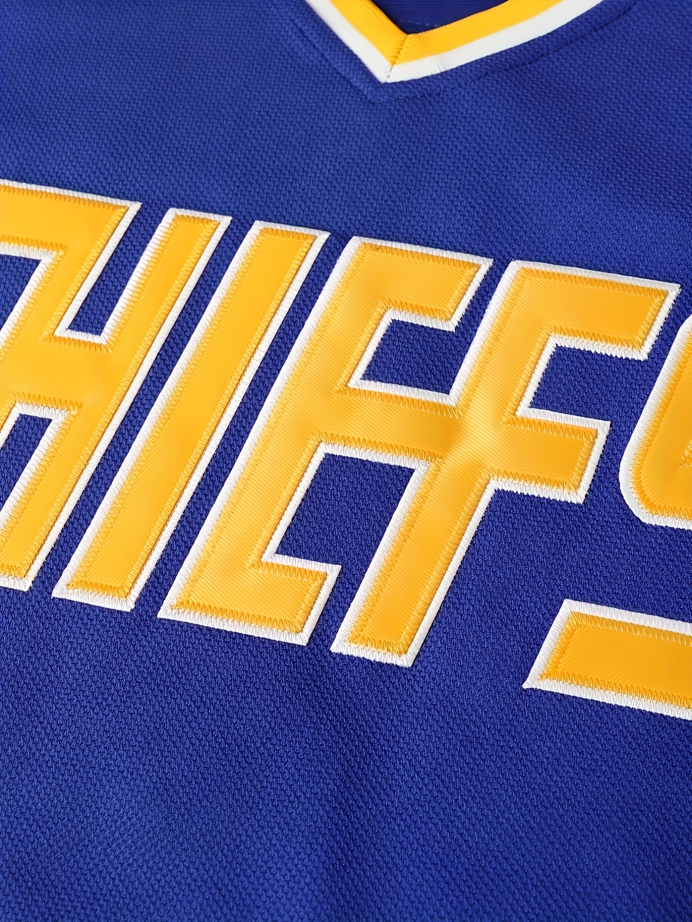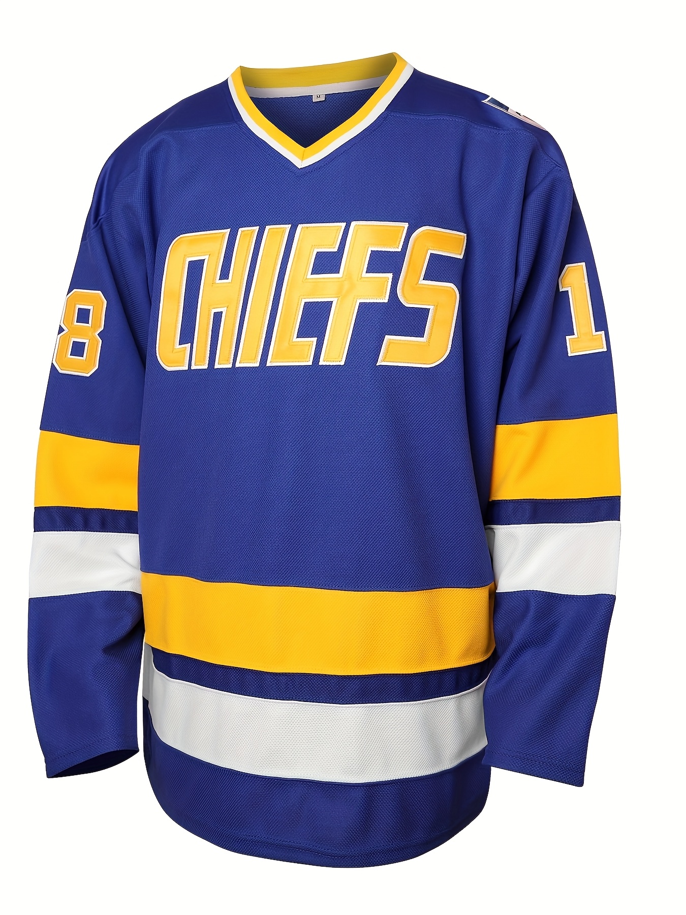 Men's #18 Blue & Yellow Embroidered Hockey Jersey - V-Neck, Long Sleeve, Loose Fit, Polyester, Machine Washable for Sports & Fans