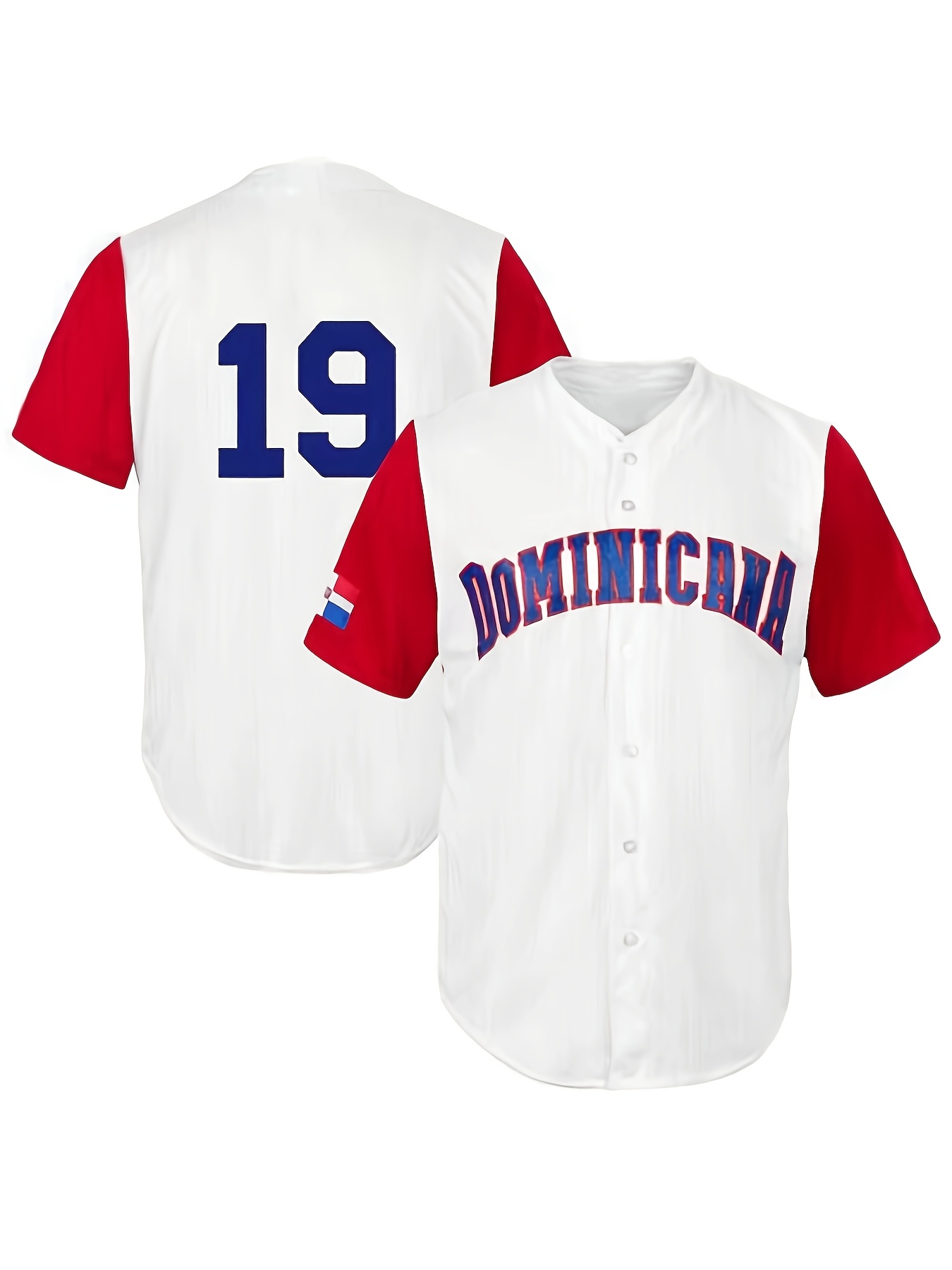 Men's #19 Embroidered White Baseball Jersey - V-Neck, Button-Up, Polyester, Machine Washable - Perfect for Sports & Parties