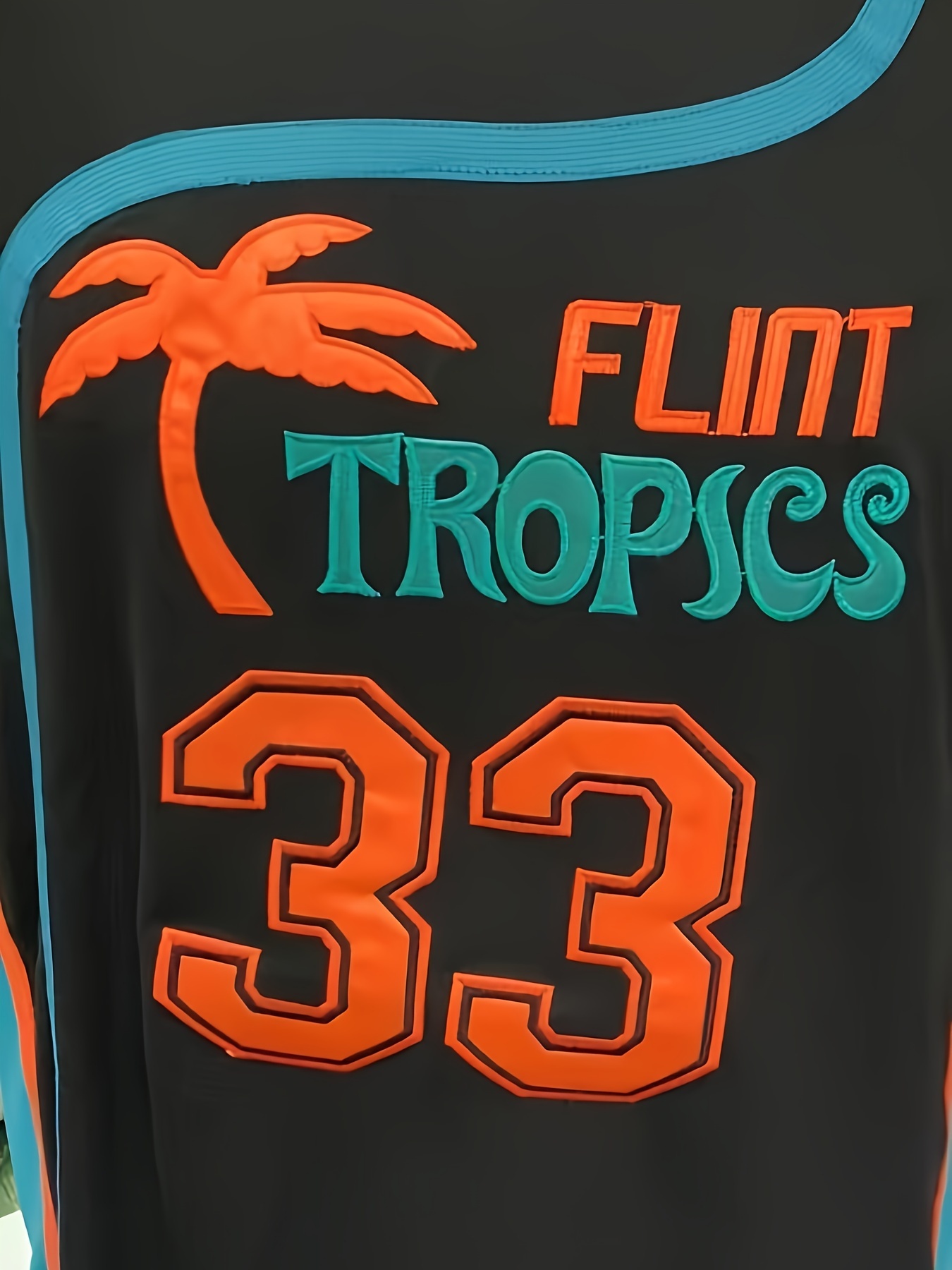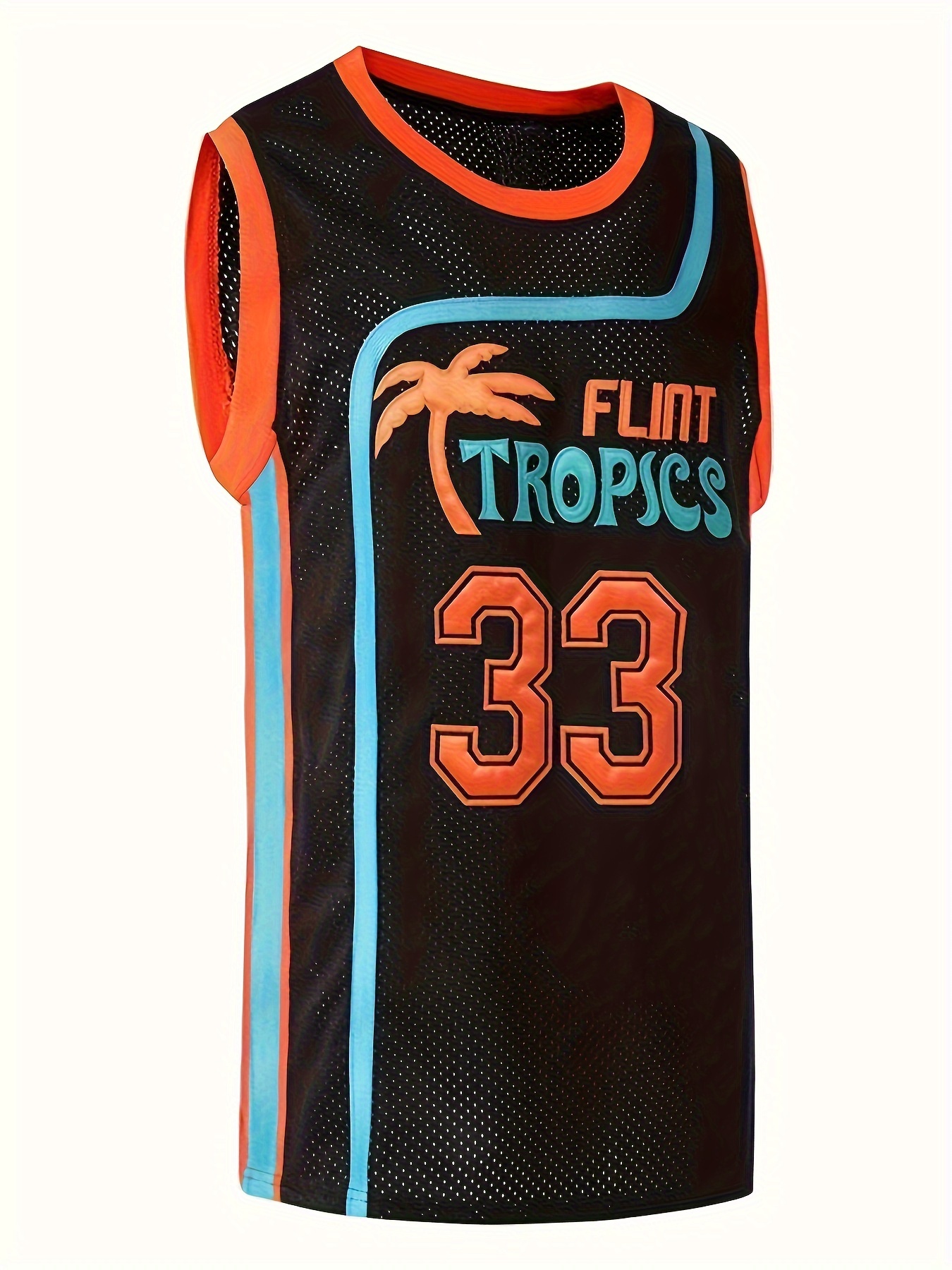 Men's #33 Embroidered Basketball Jersey - Breathable Mesh V-Neck Sleeveless Athletic Tank Top with "MOON" & "FLINT TRIPICS" Design, Loose Fit for Training & Competition, Team Apparel | Loosefit Tank | Glossy Finish Top