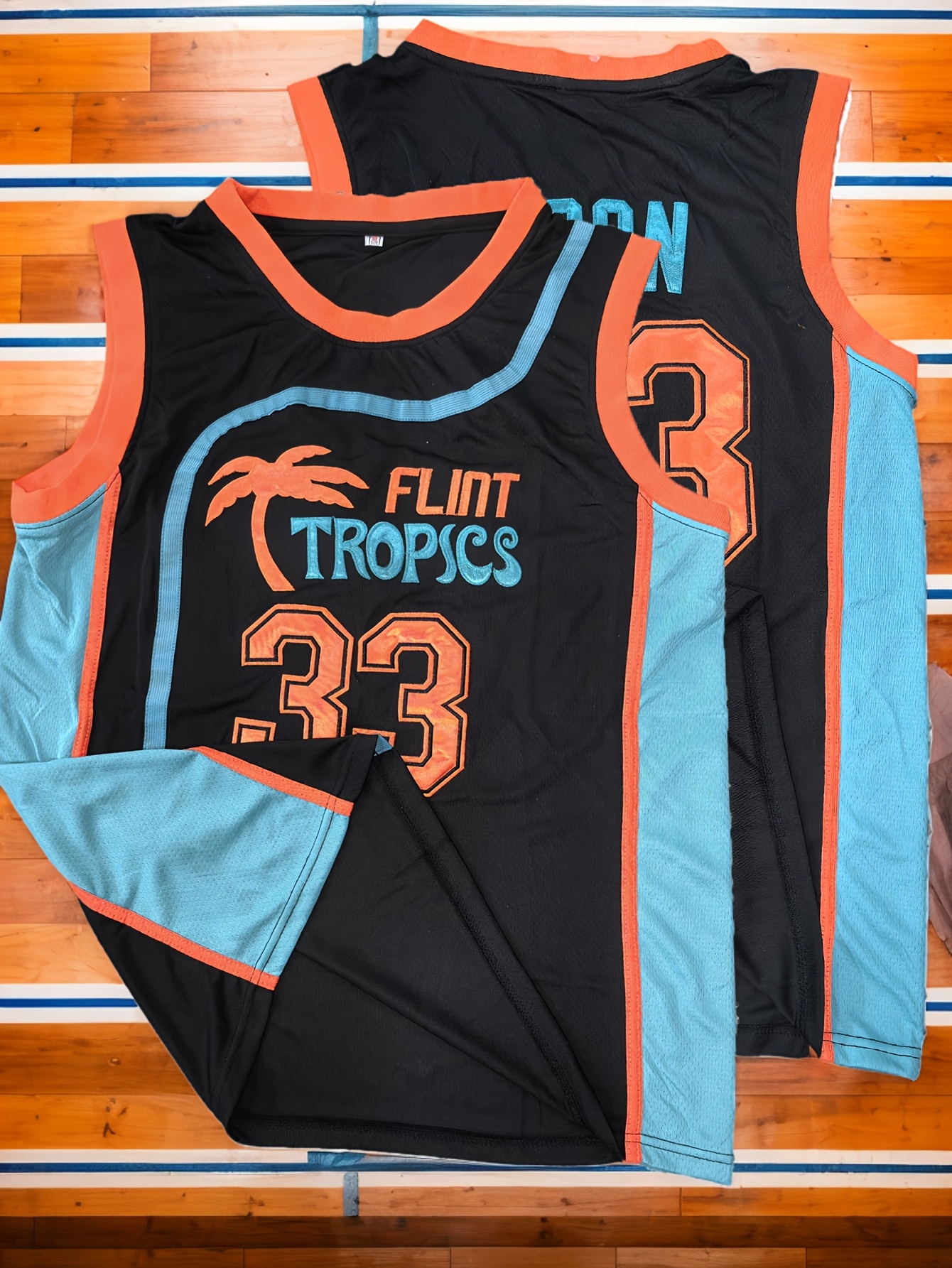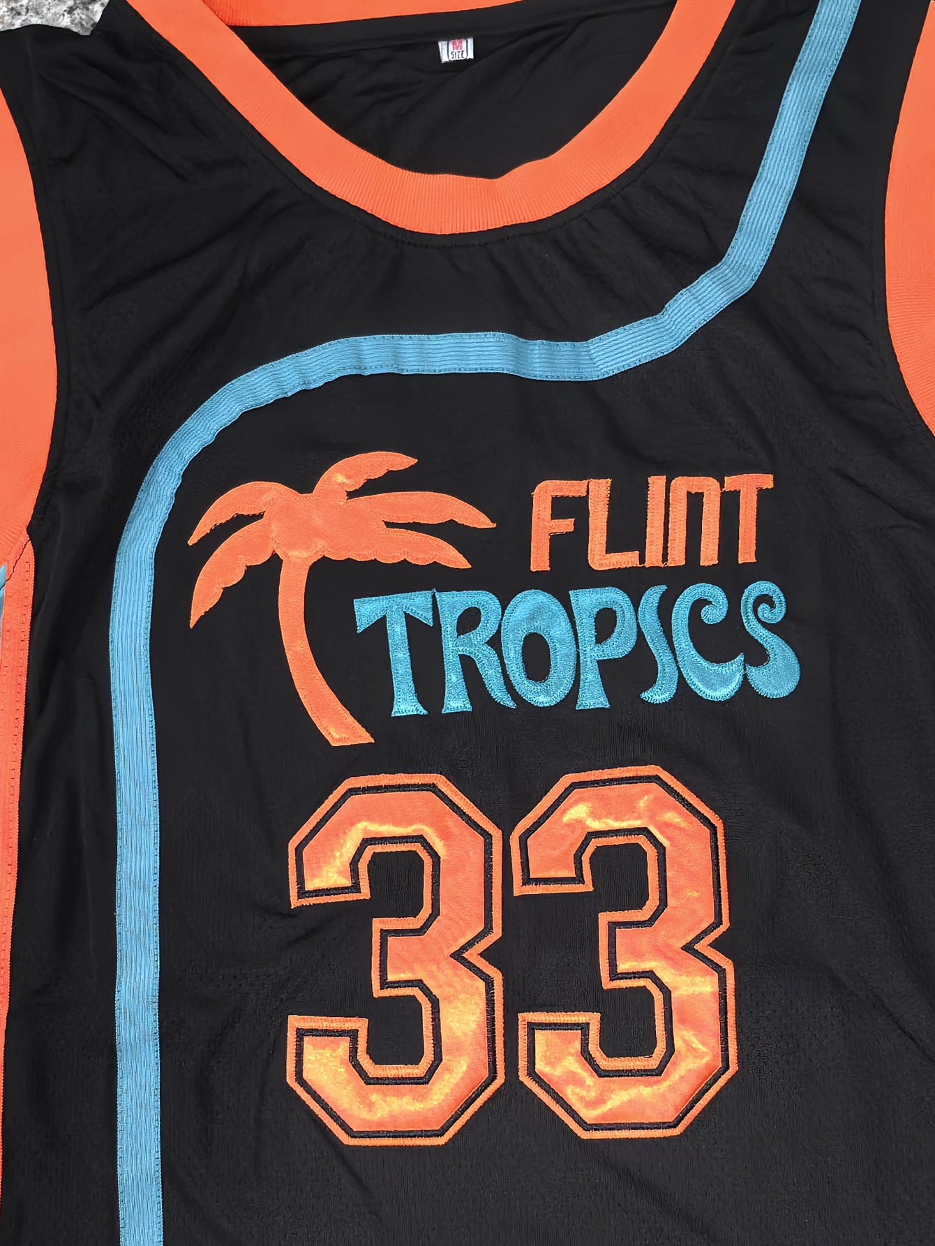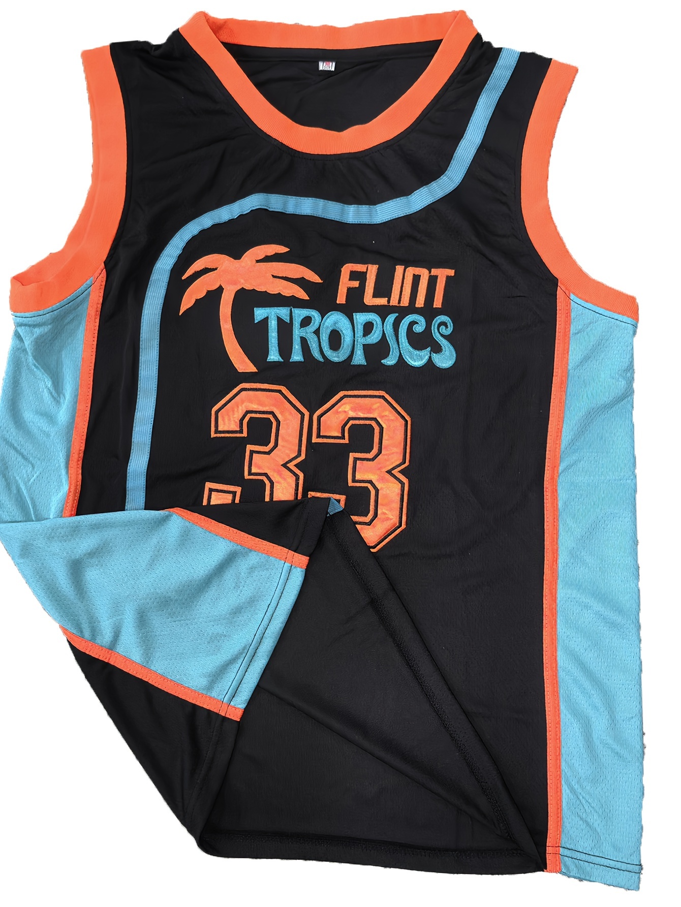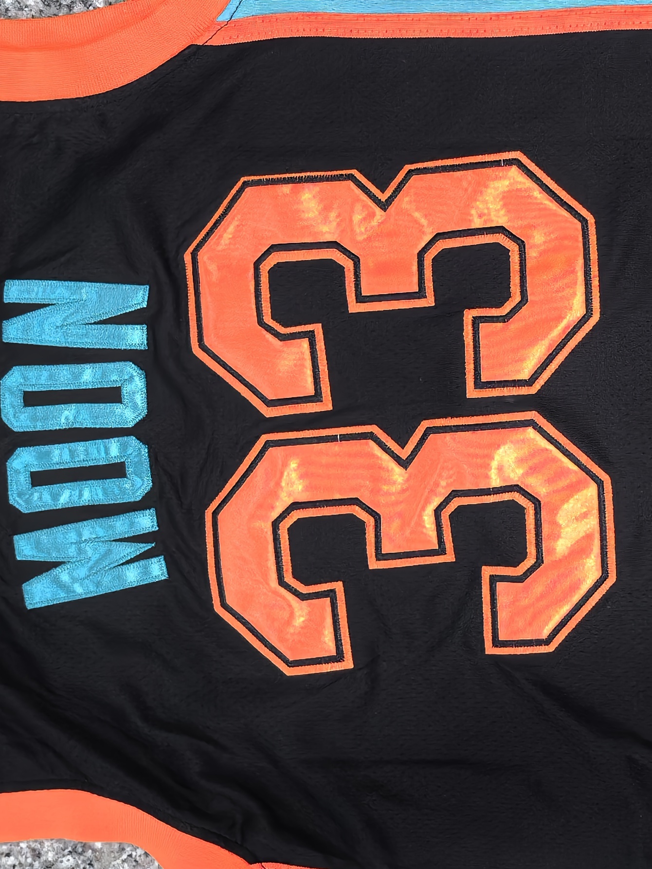 Men's #33 "MOON" Embroidered Basketball Jersey - Breathable, Sleeveless, V-Neck in Black with Blue & Orange Accents, Ideal for Sports, Outdoor Activities & Casual Wear