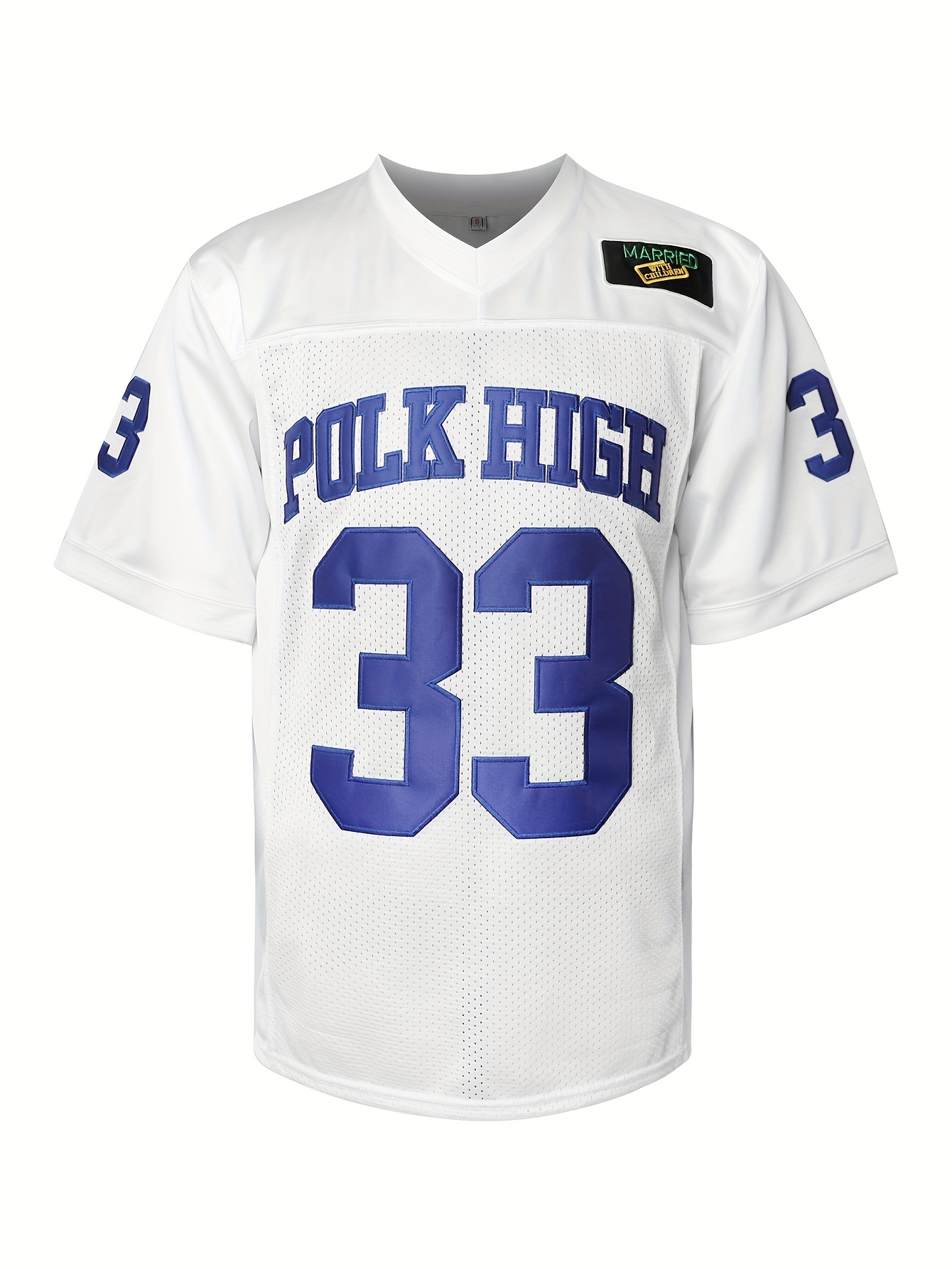 Men's #33 White American Football Jersey - V-Neck, "Paul High" Name & Number, Breathable Polyester Mesh, Loose Fit for Team Sports, Parties & Events