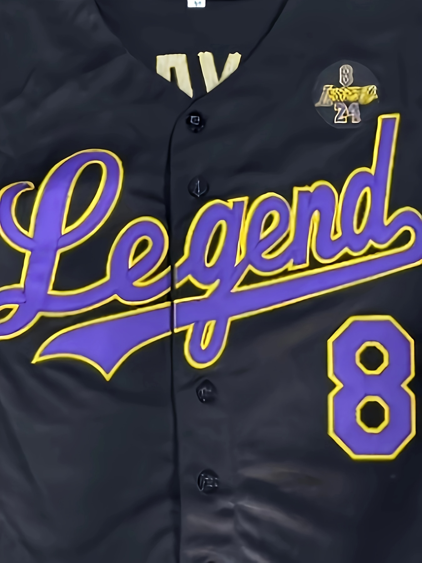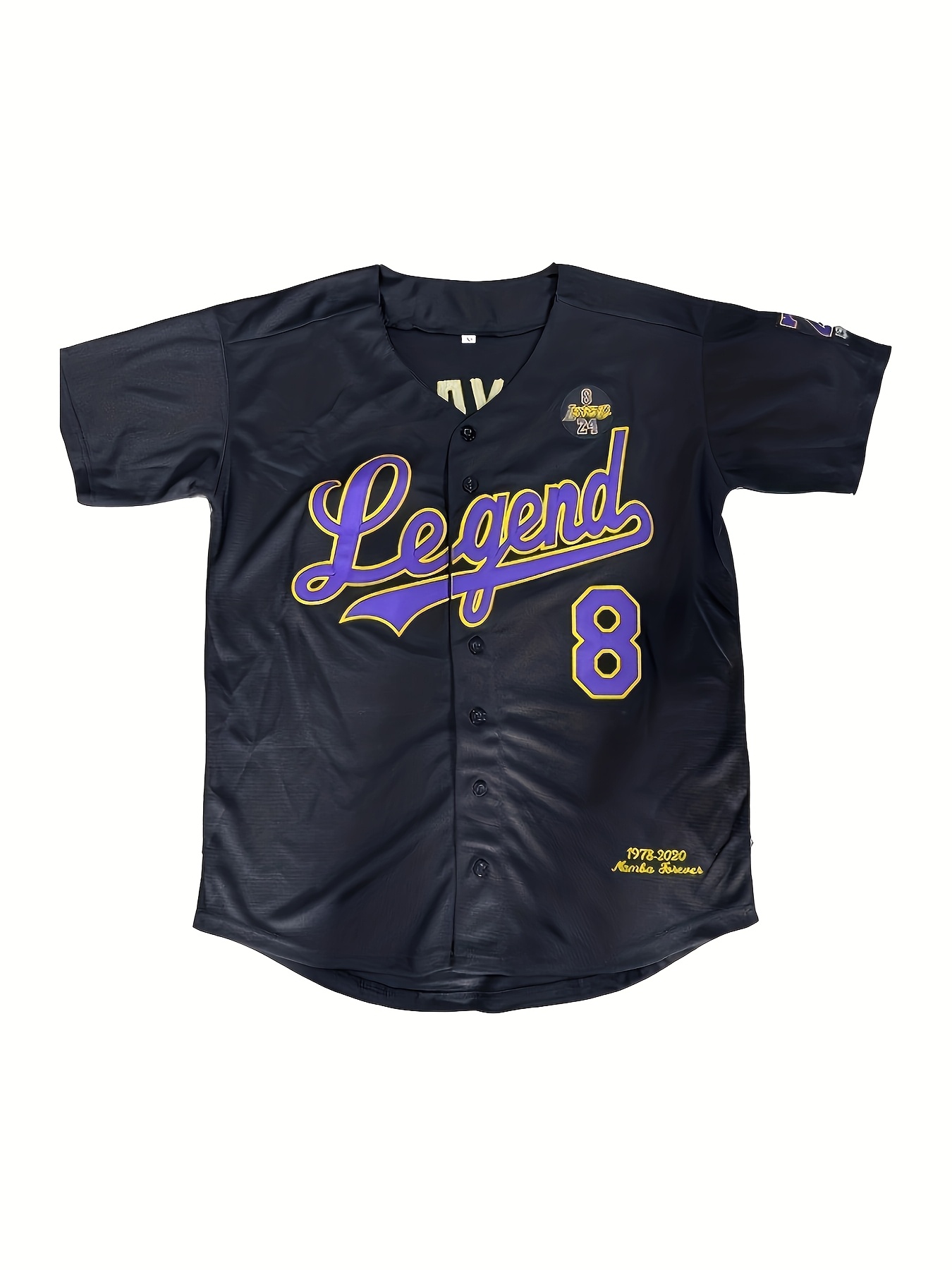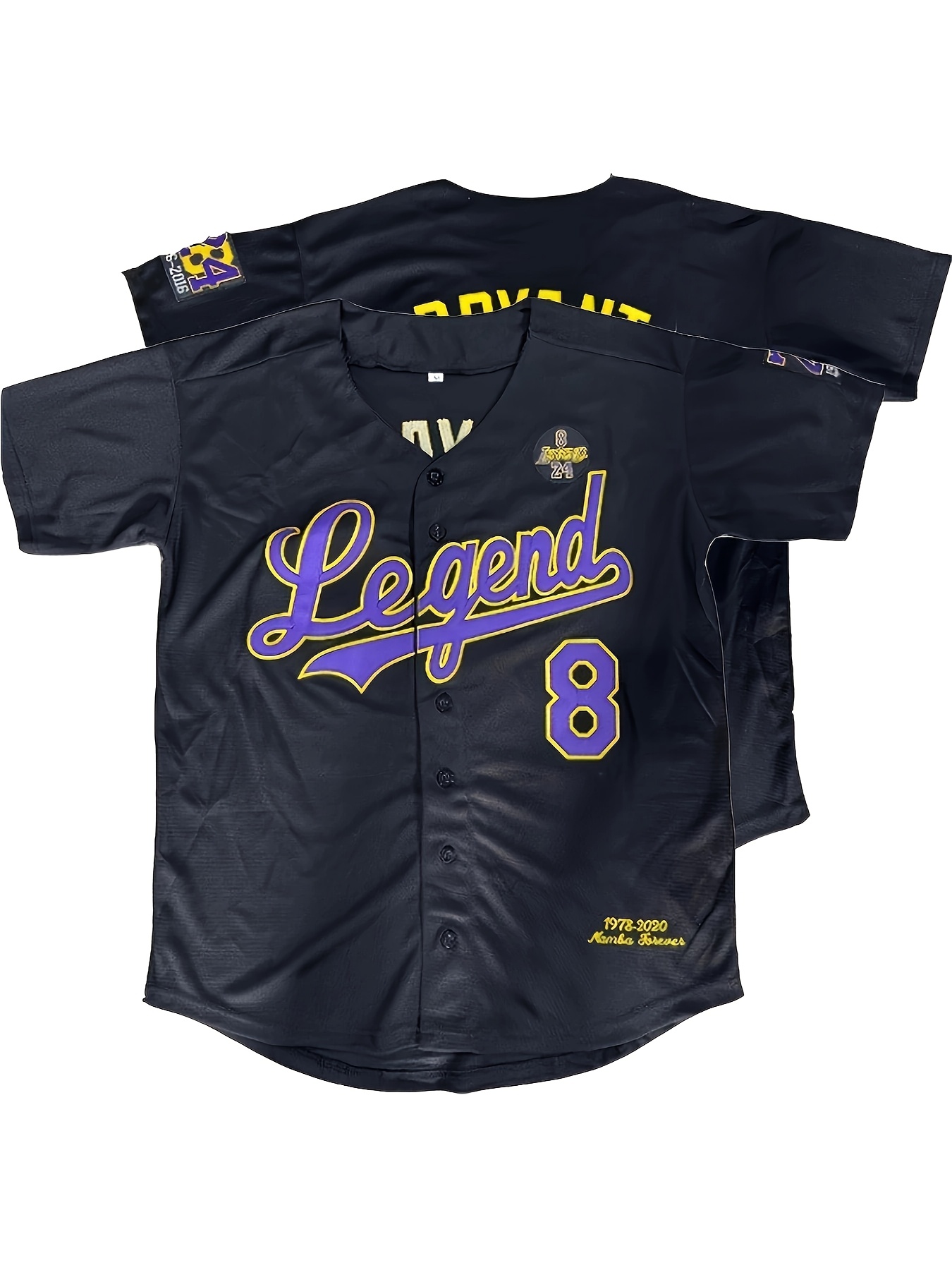 Men's #8 Black Baseball Jersey - Loose Fit V-Neck with Embroidered Name & Number, Purple Accents, All-Season Machine Washable Sportswear for Baseball, Halloween & Casual Outfits