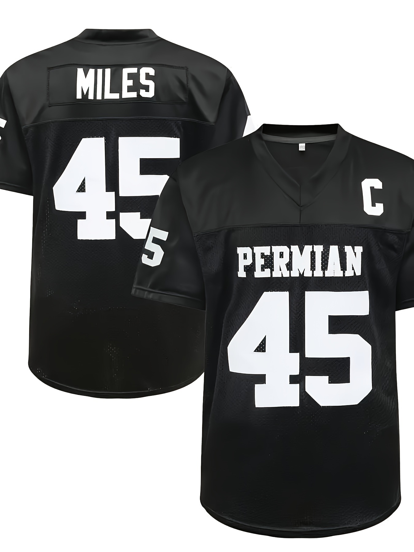 Men's Black #45 Breathable Football Jersey, Sports V-neck Short-sleeved Training And Game Uniform, Embroidered American Football Shirt