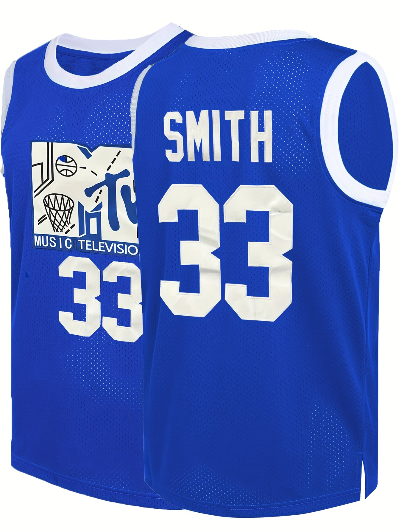 Men'S Blue Basketball Jersey, #33, Breathable Polyester, Sleeveless, V-Neck, Embroidered, Loose Fit, Sports & Outdoor Wear, Perfect for Team Sports, Casual, Holiday, Party, Vacation
