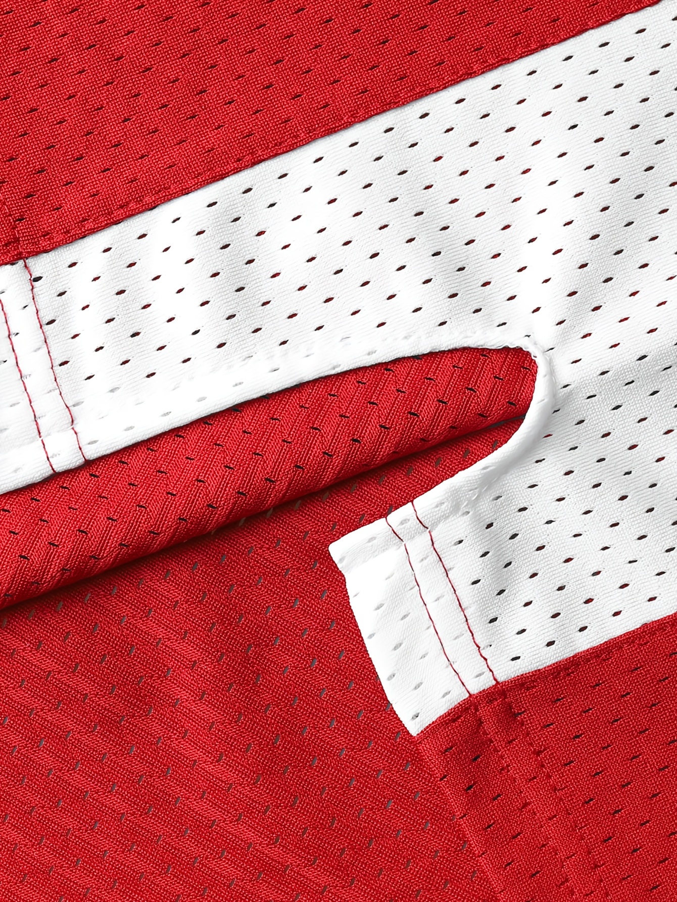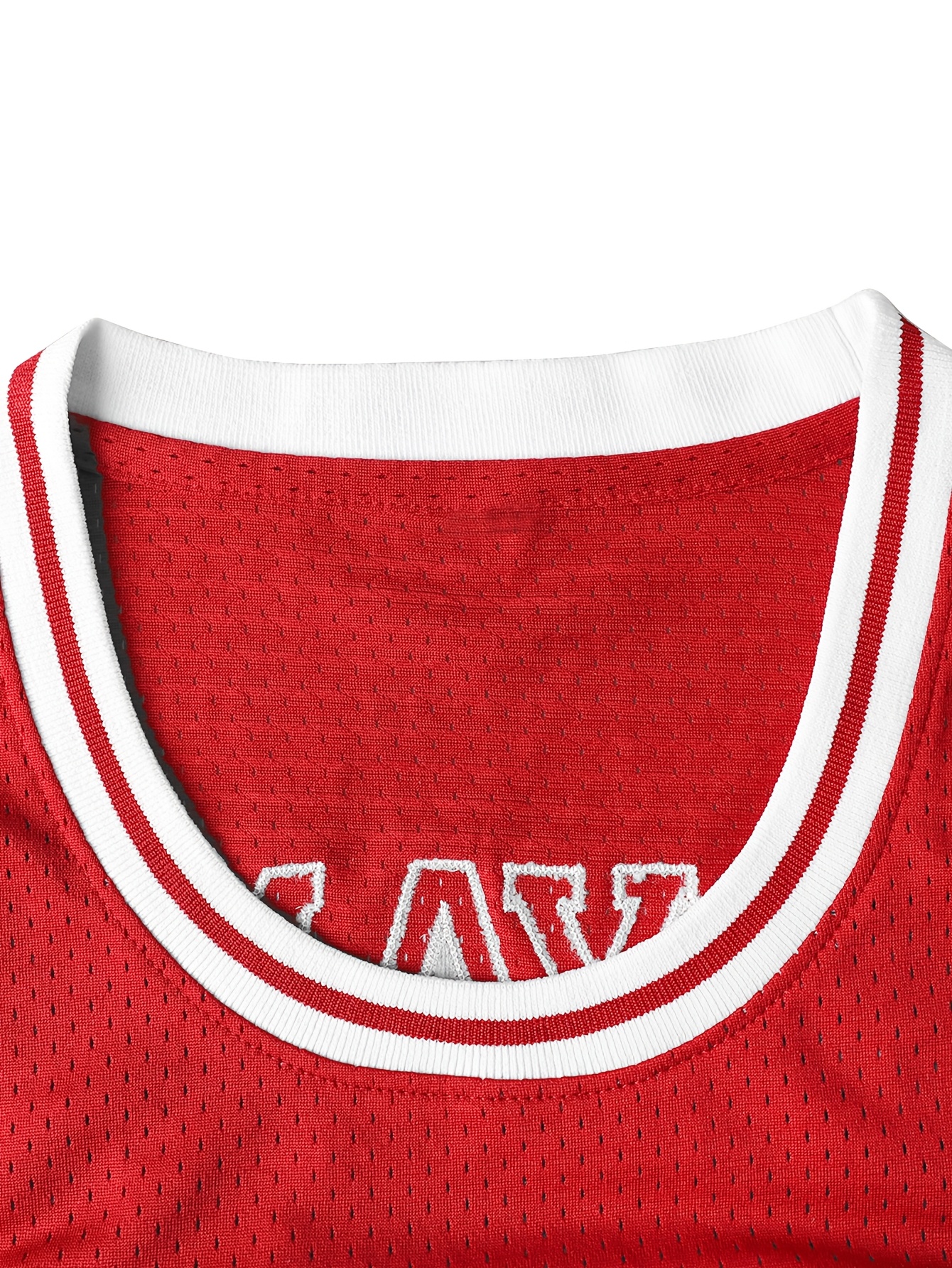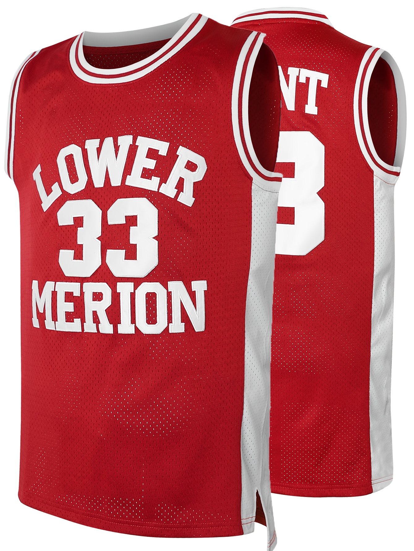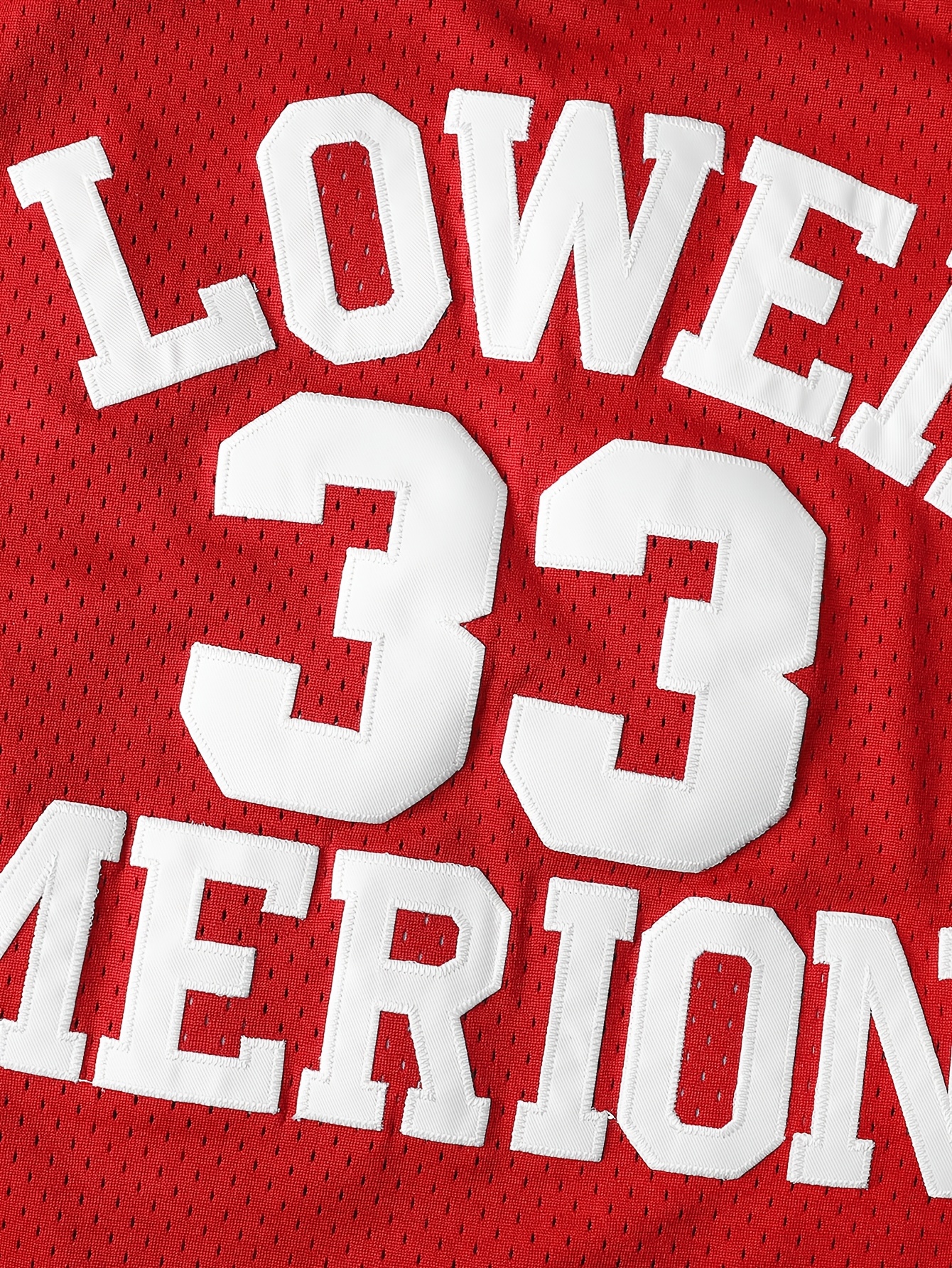 [Sports Uniform] Men's #33 "Lower Merion" Red Basketball Jersey - Breathable, Sleeveless, Embroidered Uniform Shirt with White & Black Stripes, Perfect for Sports & Outdoor Activities, Basketball Accessories