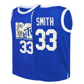 Men'S Blue Basketball Jersey, #33, Breathable Polyester, Sleeveless, V-Neck, Embroidered, Loose Fit, Sports & Outdoor Wear, Perfect for Team Sports, Casual, Holiday, Party, Vacation