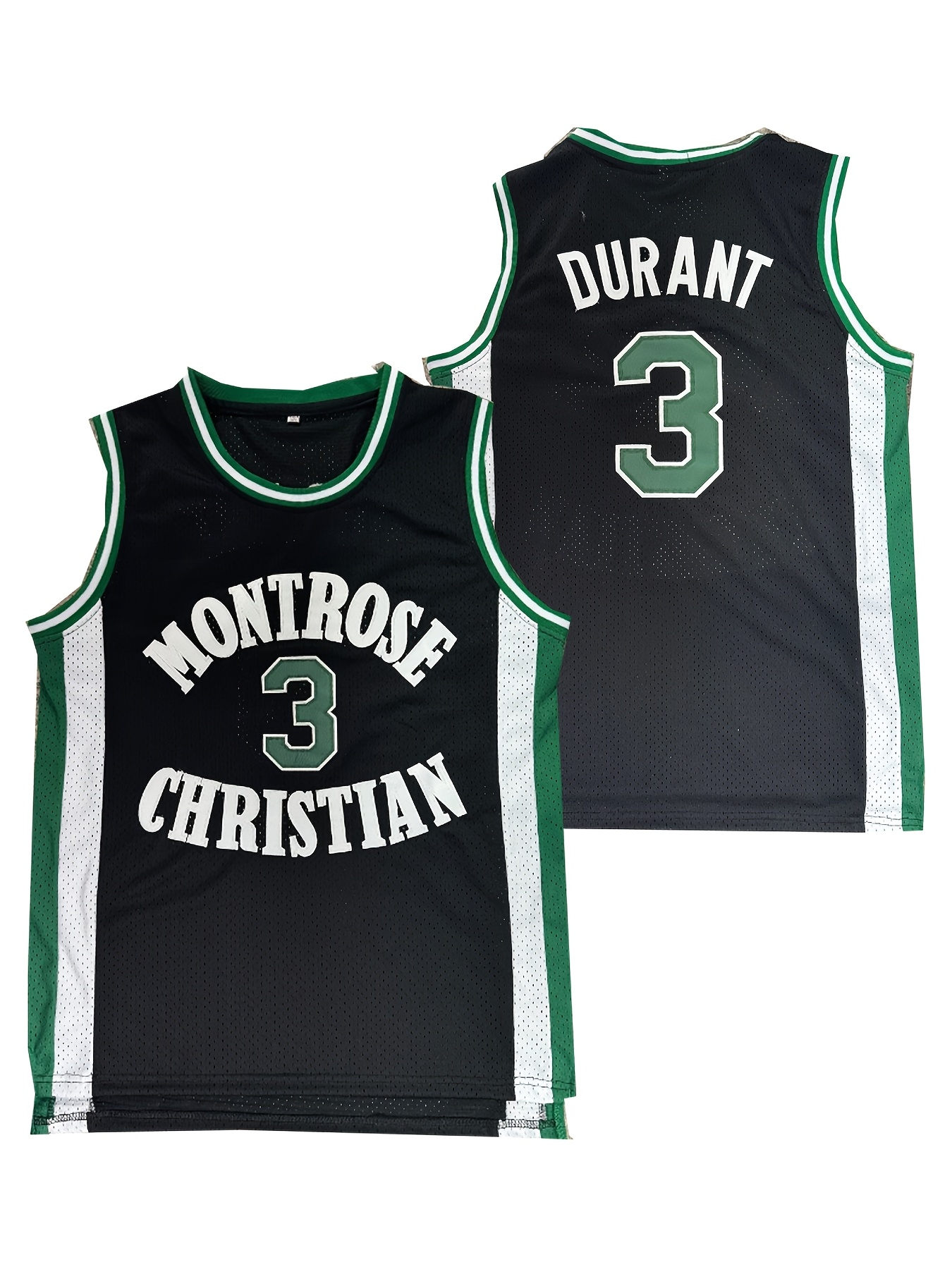 1pc Men'S #3 Montrose Christian Basketball Jersey - Embroidered Name & Number, V-Neck, Slight Stretch Polyester, Sports & Party Wear, Loose Fit, Four Seasons, Adult - Black