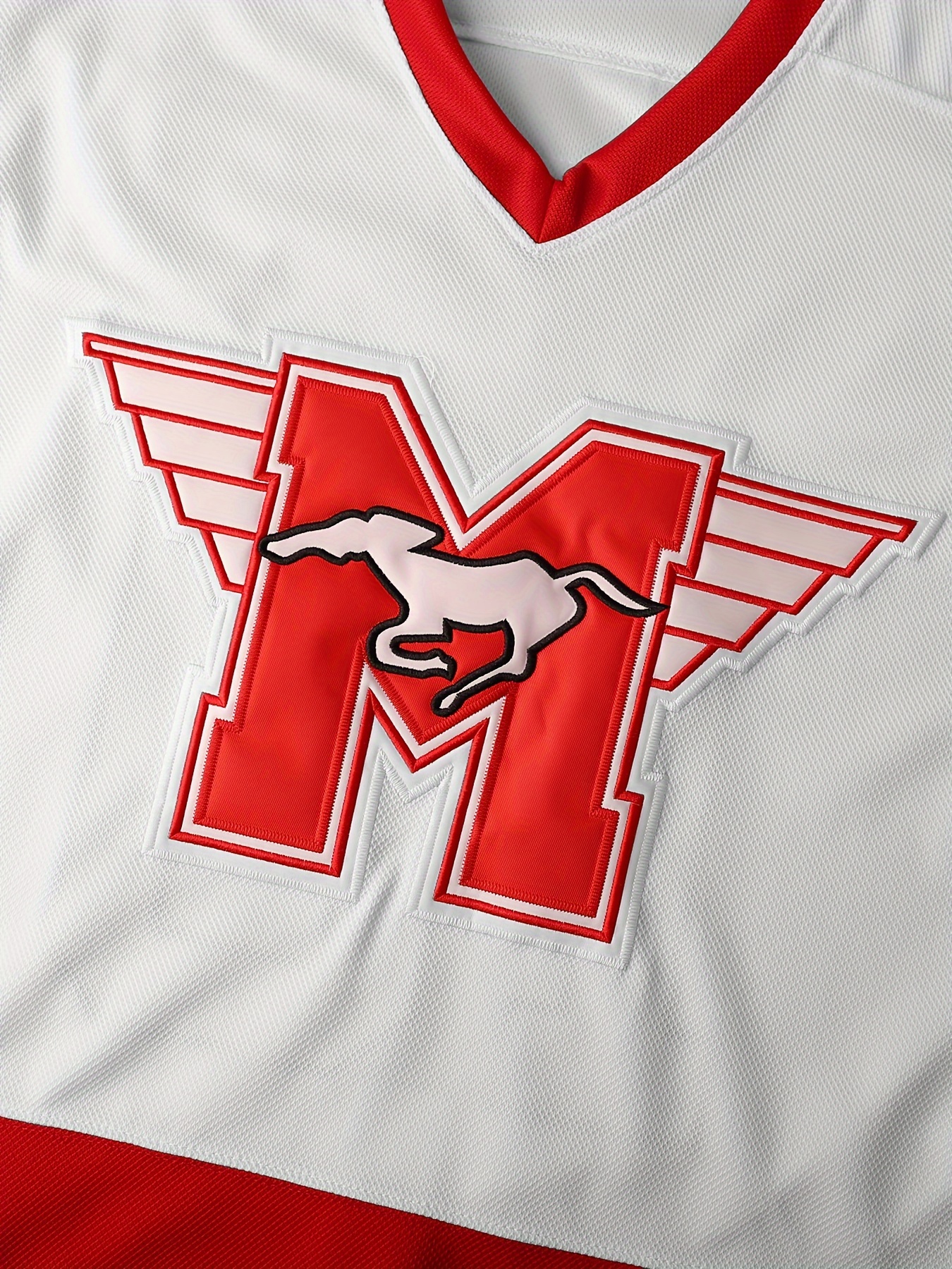 1pc Men'S Ice Hockey Jersey - Polyester Sports Sweatshirt with Embroidered Letter and Number, V-Neck, Loose Fit, Knit Fabric with Slight Stretch, Four Seasons - Adult Size Sweatshirts & Hoodies for Sports Occasions