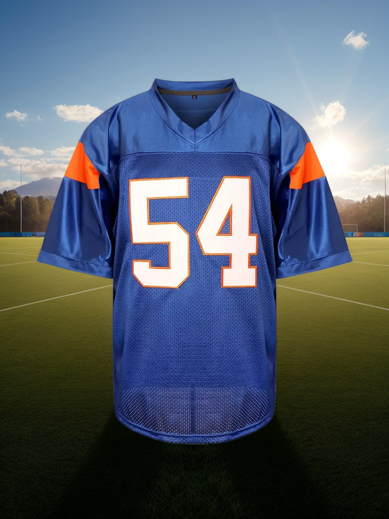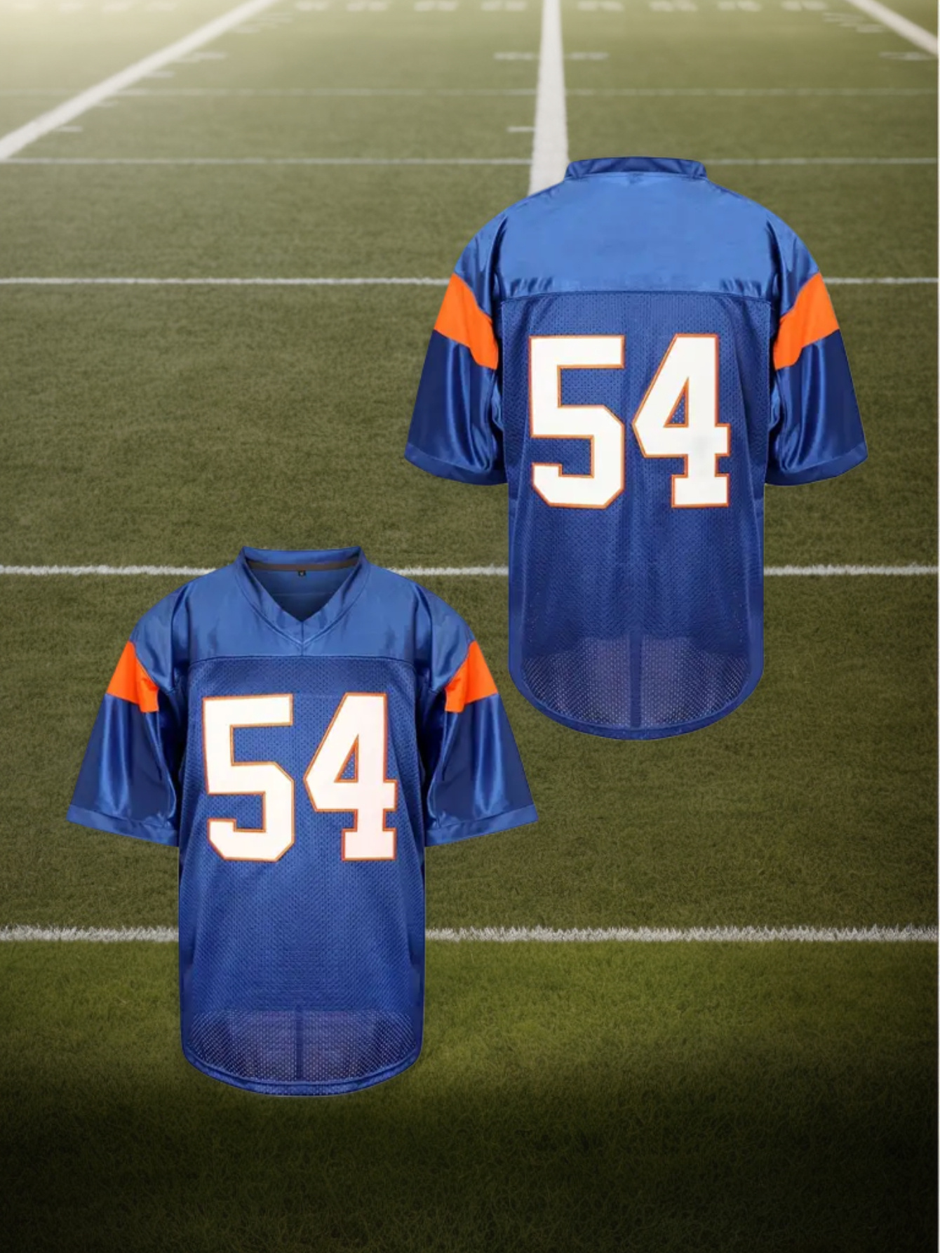 1pc Men'S Polyester V-Neck Rugby Jersey, #54 Embroidered, Casual Sports Top with Slight Stretch, Breathable Knit Fabric for Football, Parties & Training - Four Seasons Wear