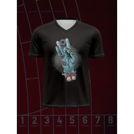 Customizable V-Neck T-Shirt for Teens & Kids, Polyester 100%, All Over Print, Casual Sports Style, Medium Stretch, Ideal for Beach, Parties, Festive Occasions, Spring/Summer/Fall - Knit Fabric
