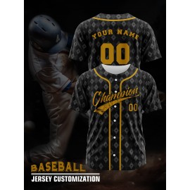 Custom Baseball Jersey for Teens, Kids Sports Training Top with Personalized Name & Number, Breathable Polyester Knit Fabric, Short Sleeve, Baseball Collar, All-Season Casual Party Wear, Slight Stretch, Outdoor & Beach Occasions