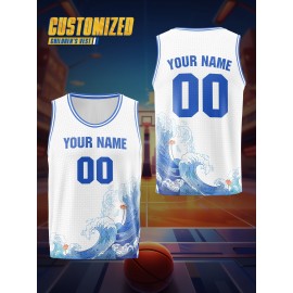 Customizable Kids Basketball Jersey, Polyester 100% Knit Fabric, Breathable & Washable, All Over Print, Loose Fit for Boys & Girls, Outdoor Sports & Casual Wear, Spring/Summer/Fall - Party, Training, Beach, Festive Occasions