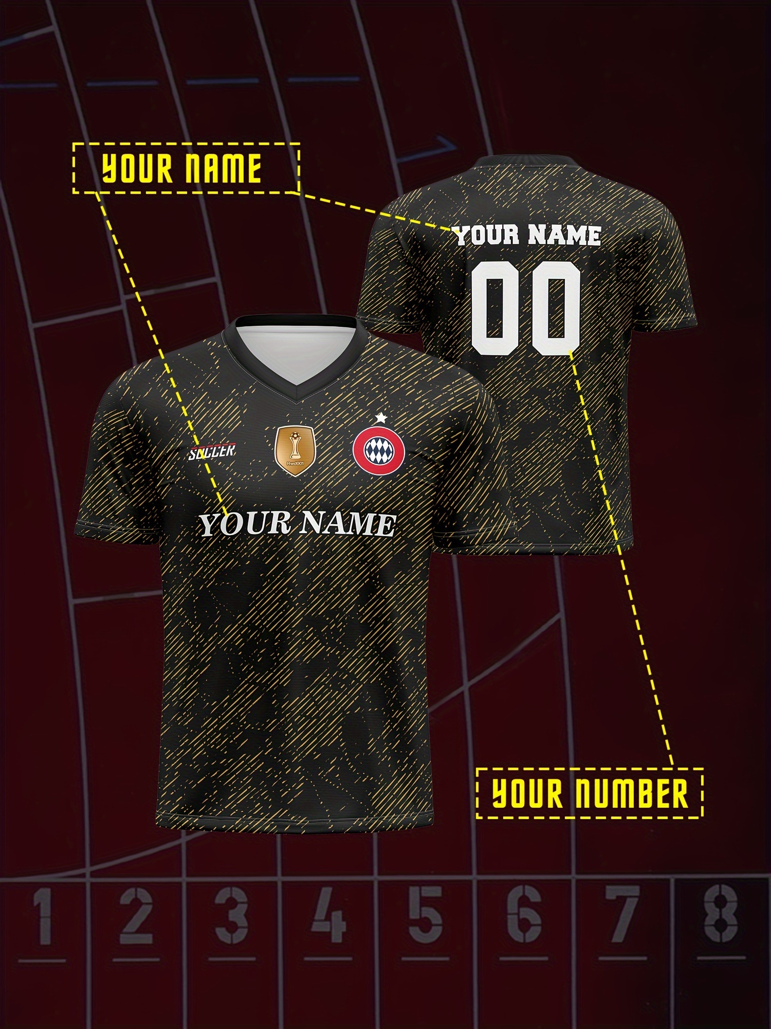 Customizable Soccer Jersey for Kids, V-Neck, Polyester, Breathable, Full-Print, Spring/Summer/Autumn, Regular Fit, for Boys & Girls, Youth, Outdoor Sports, Running, Training, Hiking, Beach, Casual, Party, Knitted Fabric