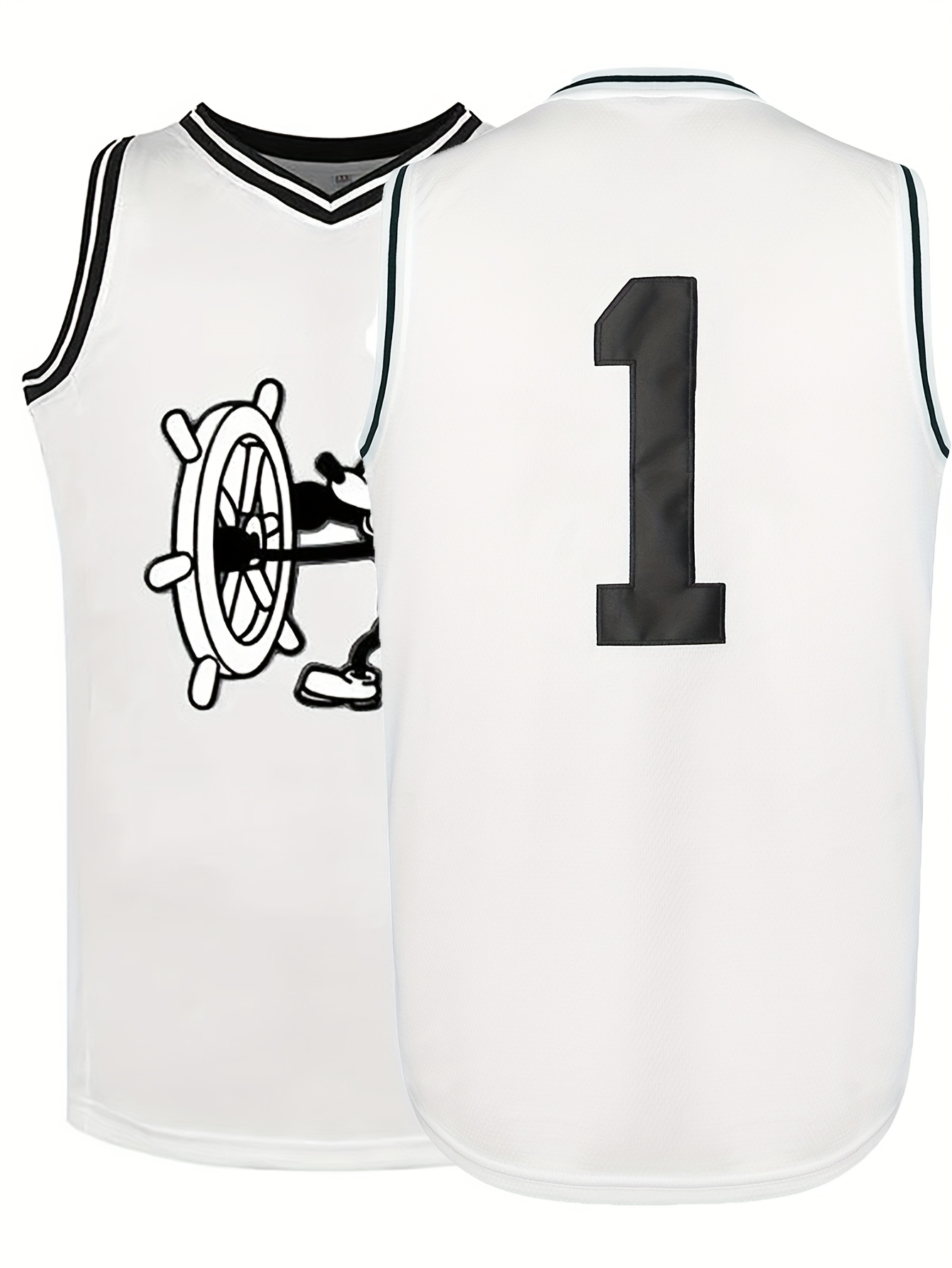 All Stitched 1 White Basketball Jersey, Breathable, Sleeveless, Embroidered Uniform Shirt For Men, Perfect For Sports & Outdoor Activities