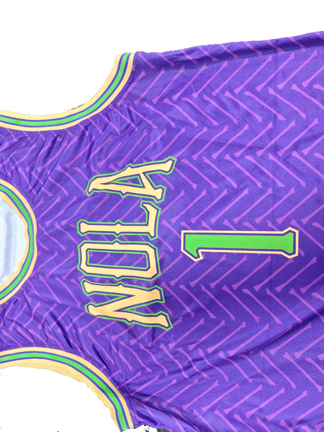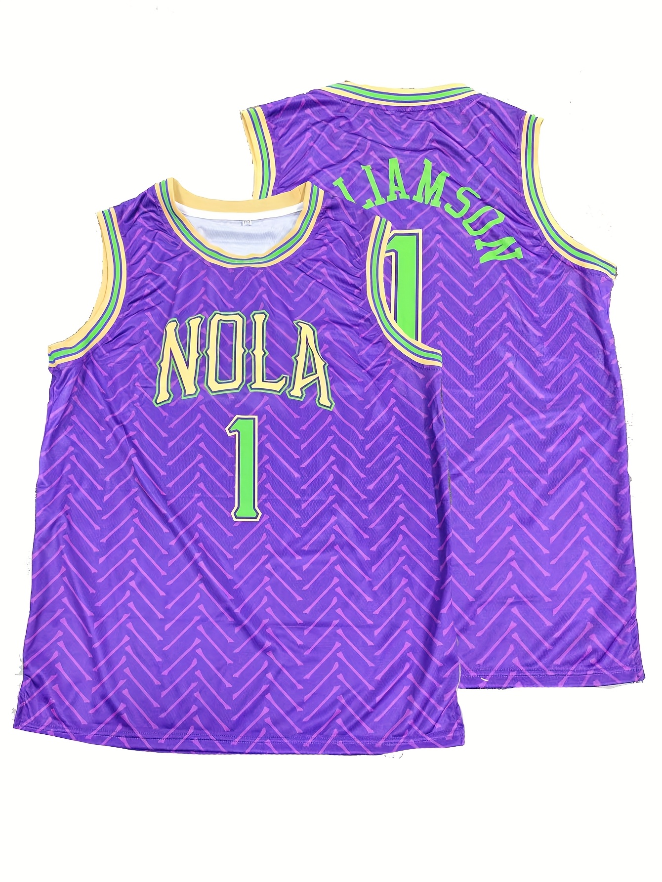Men'S #1 New Orleans Basketball Jersey - Vibrant Purple & Green Retro Design, Breathable Polyester, V-Neck Sleeveless Sports Shirt for Parties, Training & Casual Wear, Sports Casual Wear | Retro Basketball Jersey | Polyester Mesh Fabric
