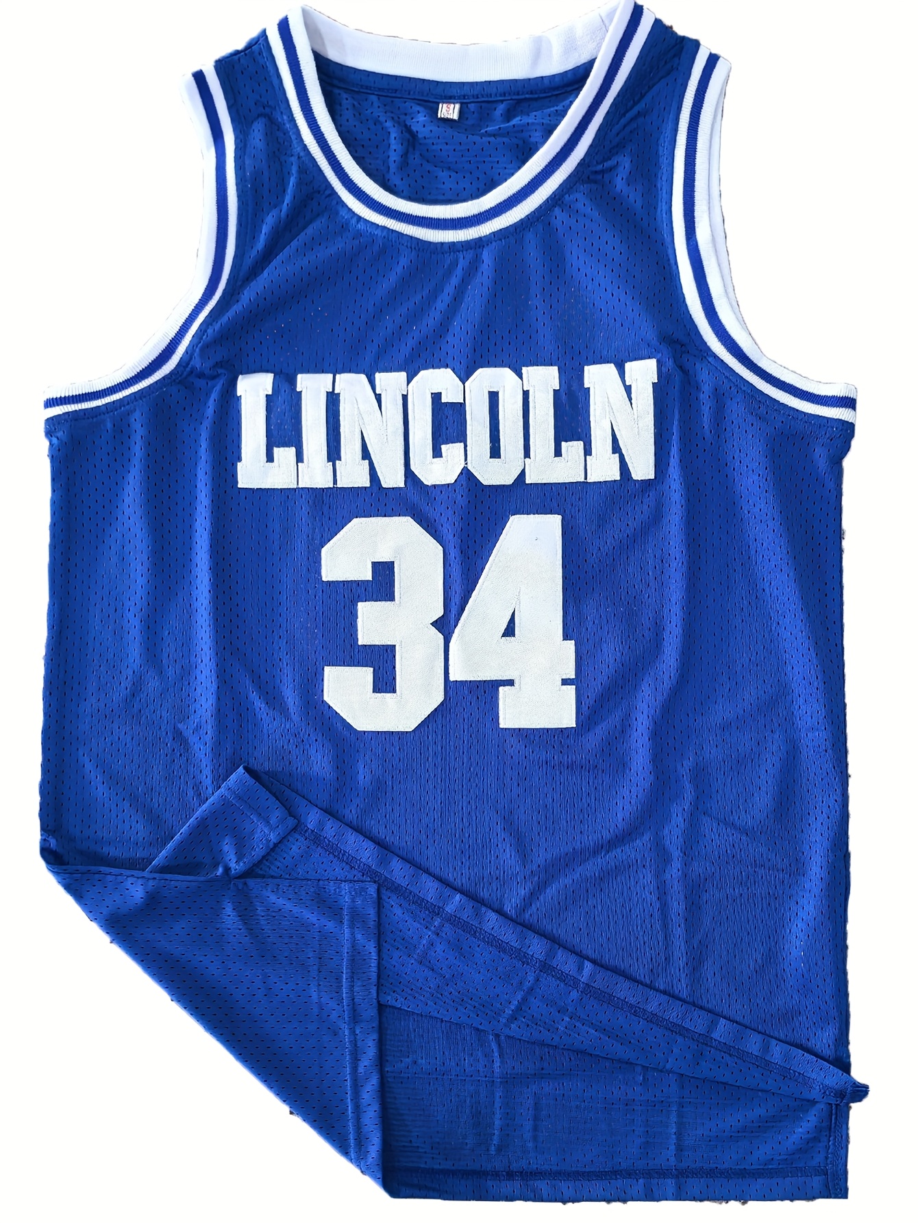 Men's #34 Basketball Jersey - Breathable Sleeveless Embroidered Uniform, Loose Fit for Sports & Outdoor Activities, Machine Washable, All-Season Comfort (Blue/White/Red), Basketball Gear, Team Apparel, Sporty Look, Durable Sportswear