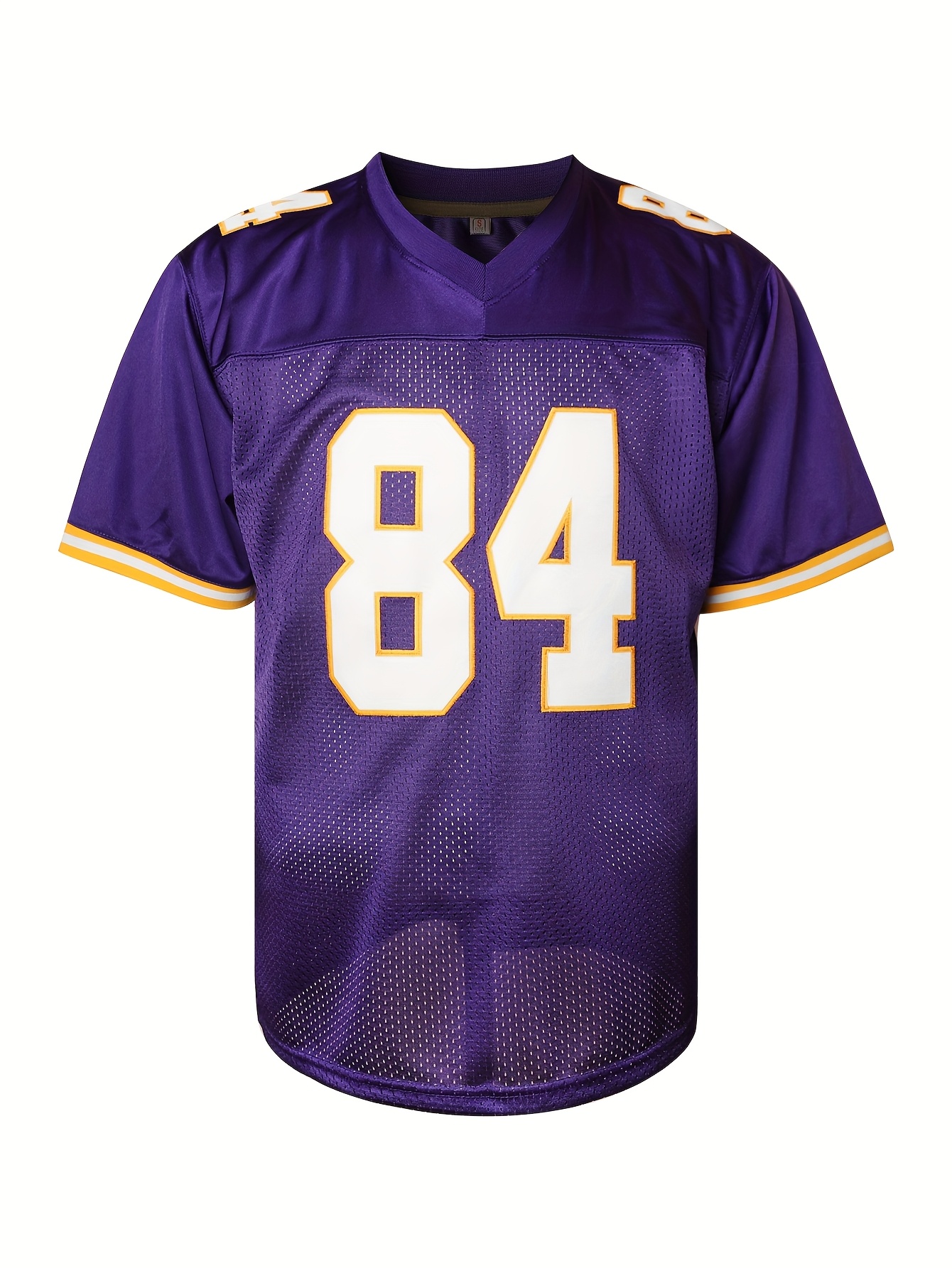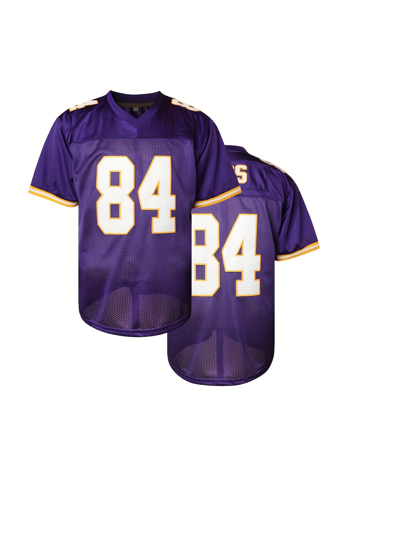 Men'S #84 Purple Sports Jersey, Polyester V-Neck Football Jersey with Embroidery, Slight Stretch Knit Fabric, Loose Fit, for Adult Men, Four Seasons, Casual & Training Wear, Sports & Party