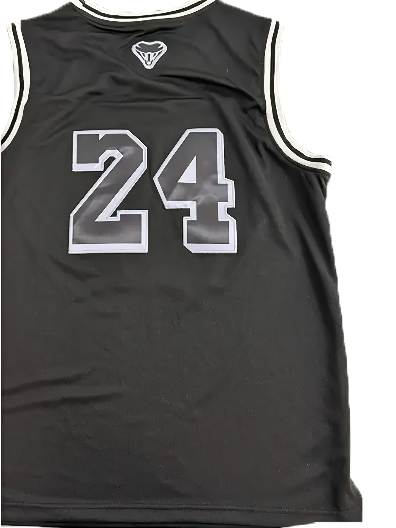 Men's Black Embroidered #24 Basketball Jersey - Breathable Polyester, Loose Fit V-Neck, Short Sleeves, Perfect for Sports, Outdoor Activities, and Casual Wear, Outdoor Activewear | Vneck Top | Polyester Fabric