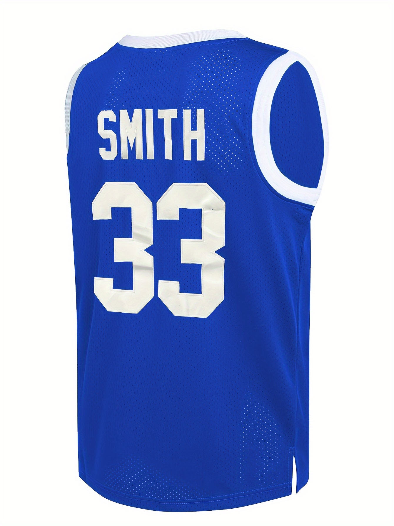 Men'S Blue Basketball Jersey, #33, Breathable Polyester, Sleeveless, V-Neck, Embroidered, Loose Fit, Sports & Outdoor Wear, Perfect for Team Sports, Casual, Holiday, Party, Vacation