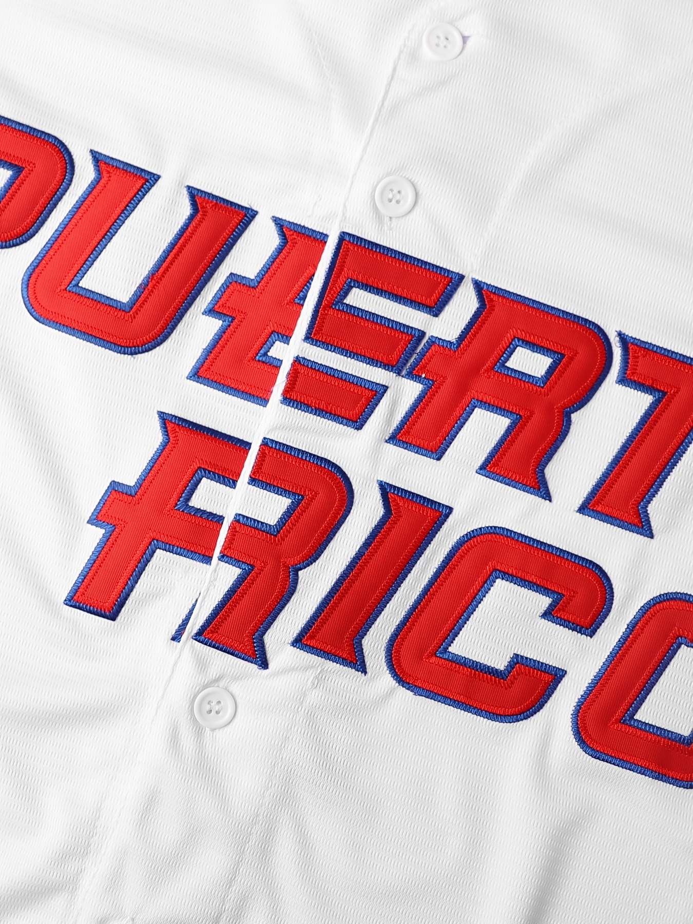 Men's Puerto Rico Baseball Jersey - Embroidered Number 1 & Name, White with Red Accents, 100% Polyester, Loose Fit V-Neck Button-Up for Sports, Halloween, Parties & Casual Wear, Puerto Rico Shirt