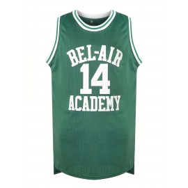Men's #14 Green Basketball Jersey with Embroidered Name & Number, V-Neck Sleeveless Athletic Uniform for Team Sports & Parties, Polyester, Loose Fit, Sizes S-3XL