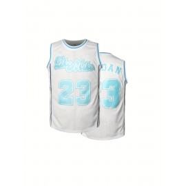 Men's #23 Embroidered Basketball Jersey - Breathable, Sleeveless, Loose Fit with Mesh Detailing & Number Stitching - Perfect for Sports, Outdoor Activities & Casual Wear, Athletic Clothing | Casual Style | Mesh Construction